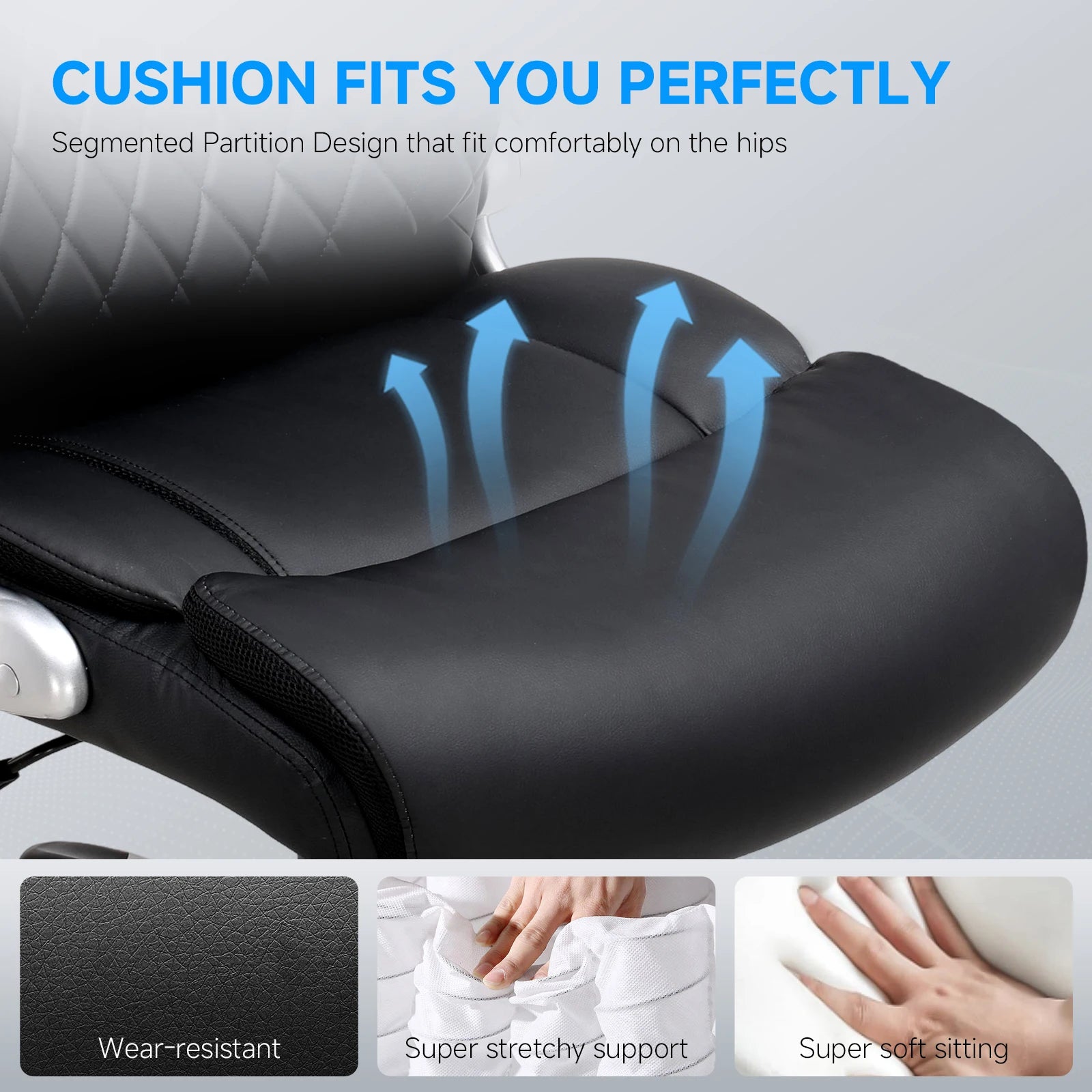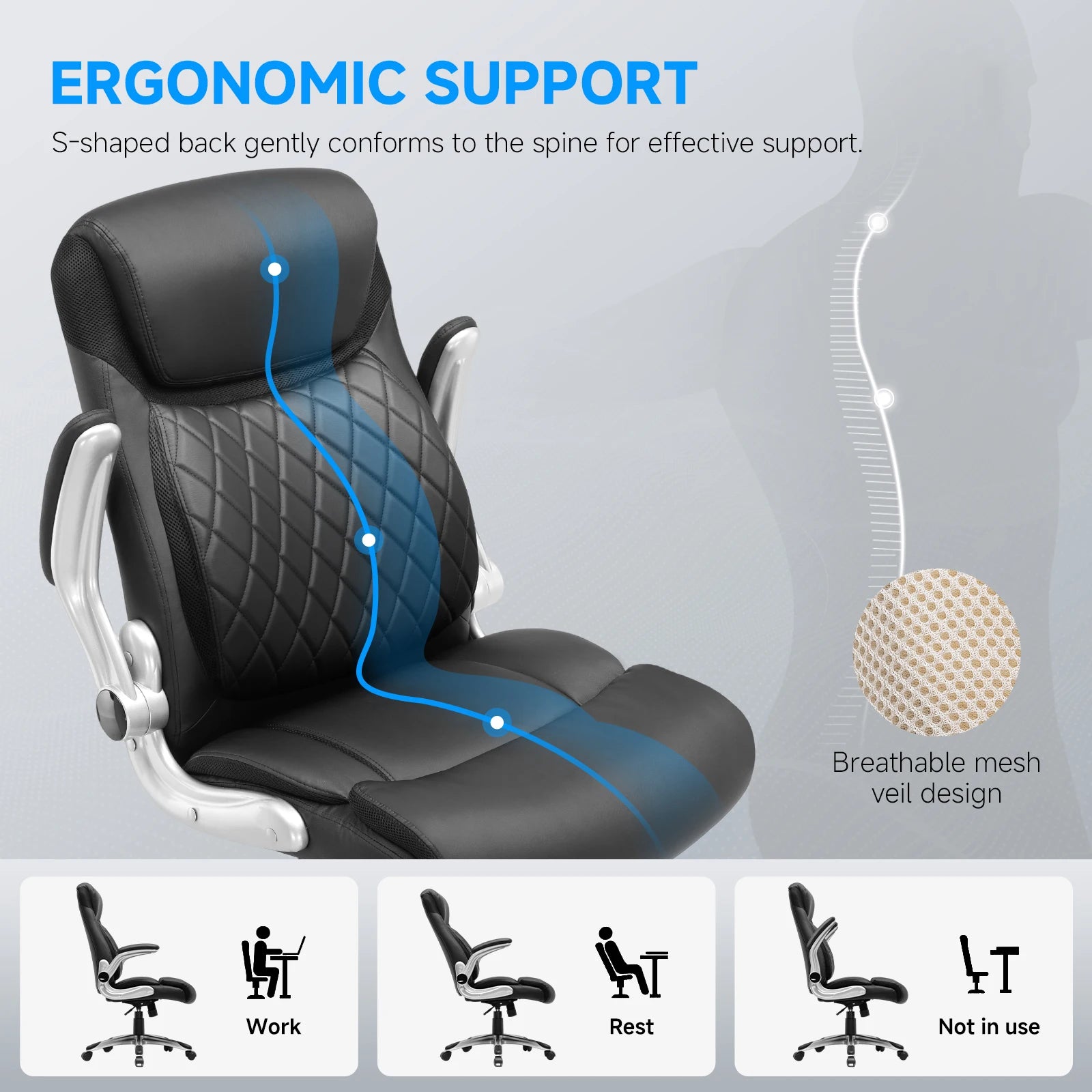 COMHOMA Bürostuhl Ergonomisch, Schreibtischstuhl mit klappbaren Armlehnenmit und Hoher Rückenlehne, Kratzfeste Leder