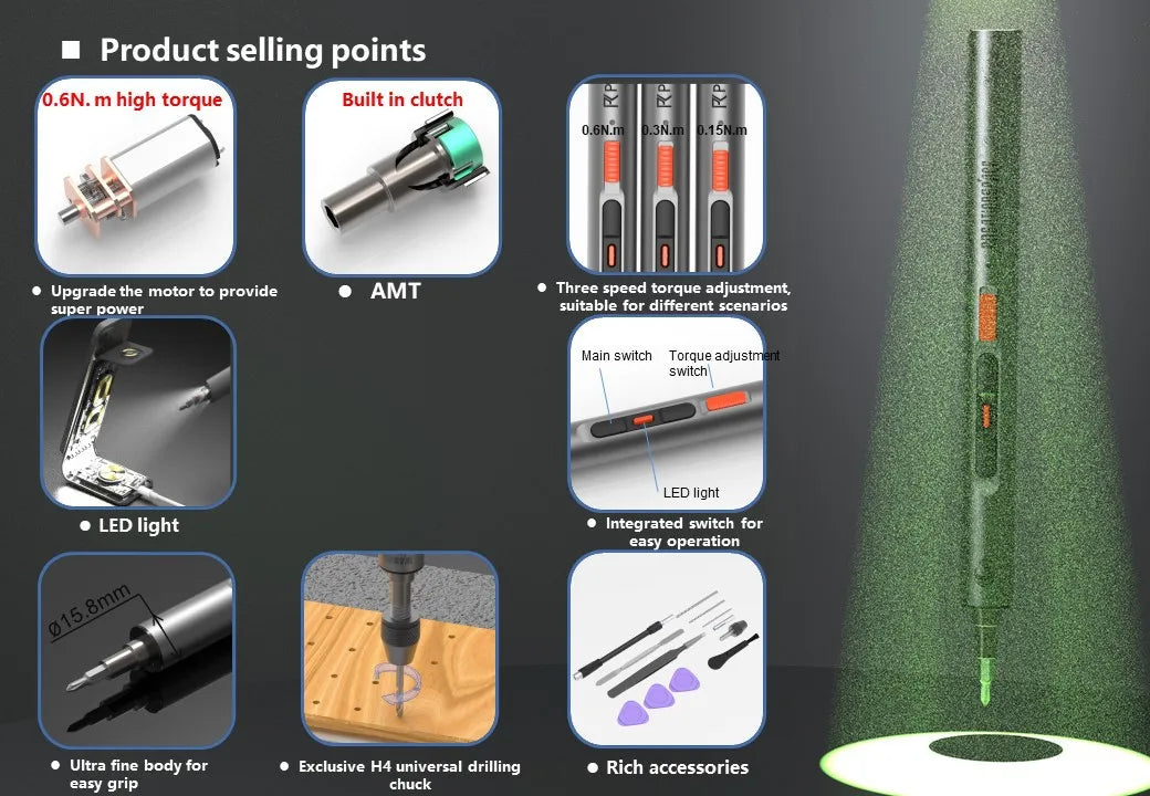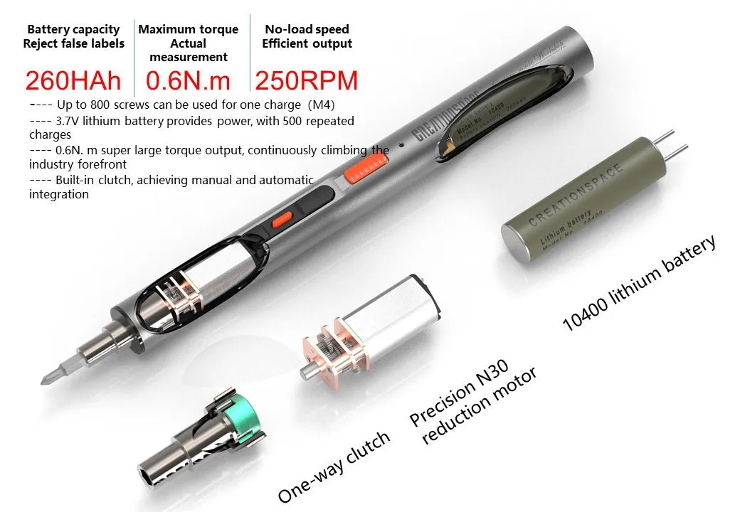 CreationSpace 3,6 V Mini-Elektroschrauber, wiederaufladbarer Schraubendreher-Set mit LED-Licht, 3 Drehmomenteinstellungen, CS0702A, CS701A