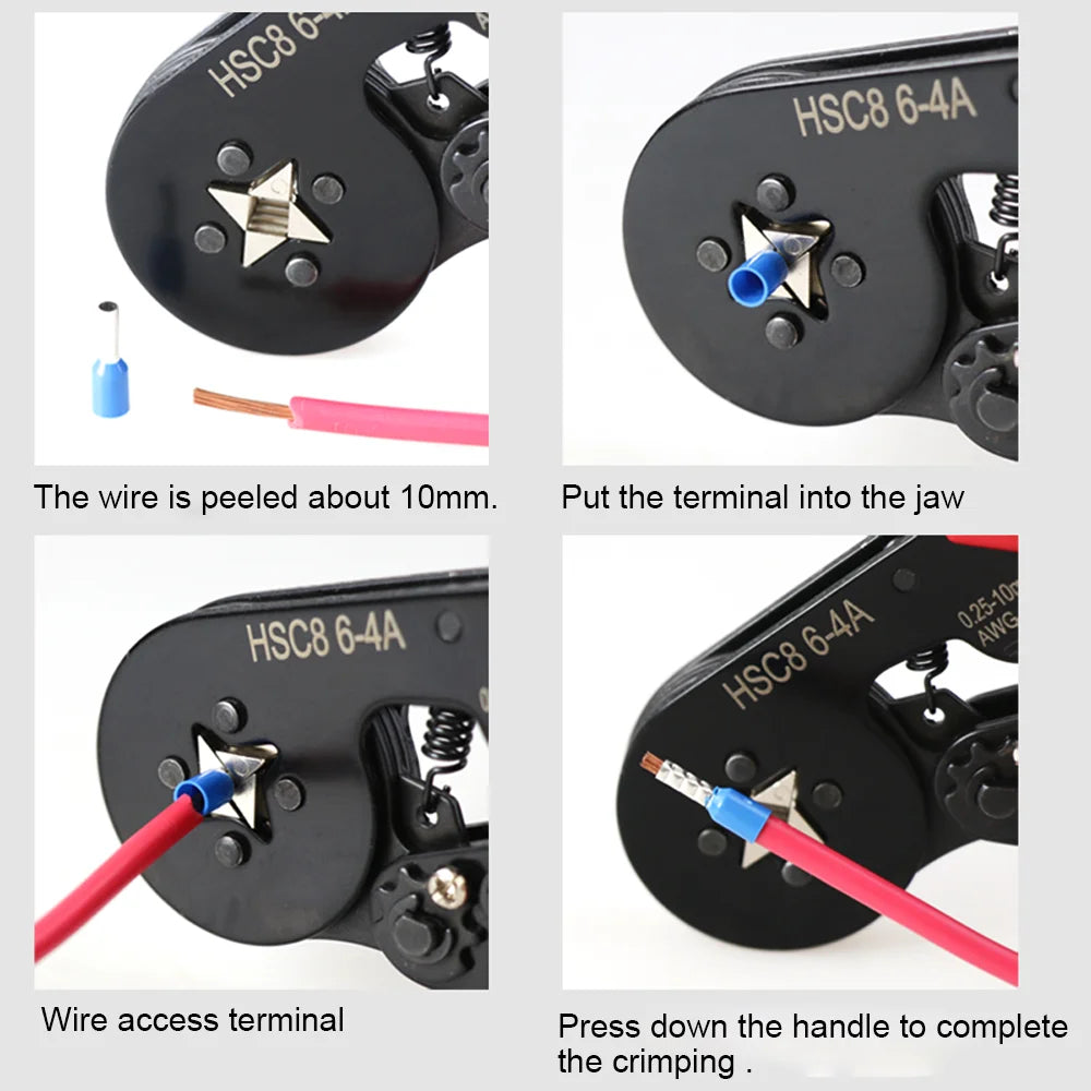 Crimpwerkzeuge HSC8 6-6A Selbsteinstellende Sechskantdraht-Crimpzange für 0,25-6 mm2 (AWG23-10) Reparaturwerkzeug für elektrische Schaltkreise
