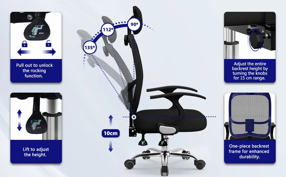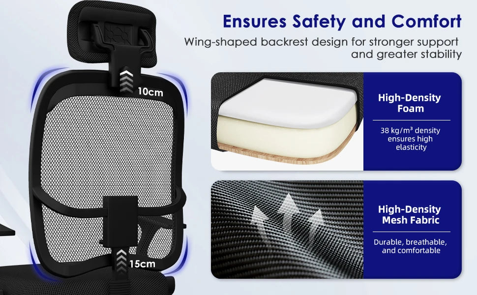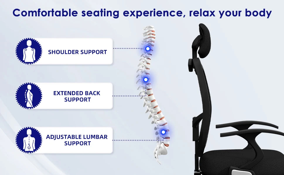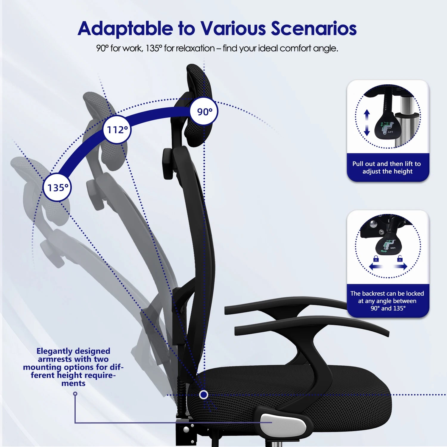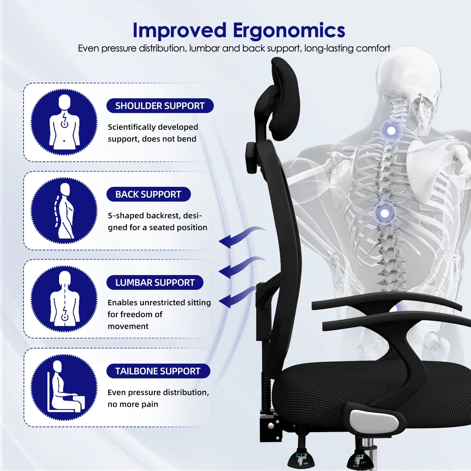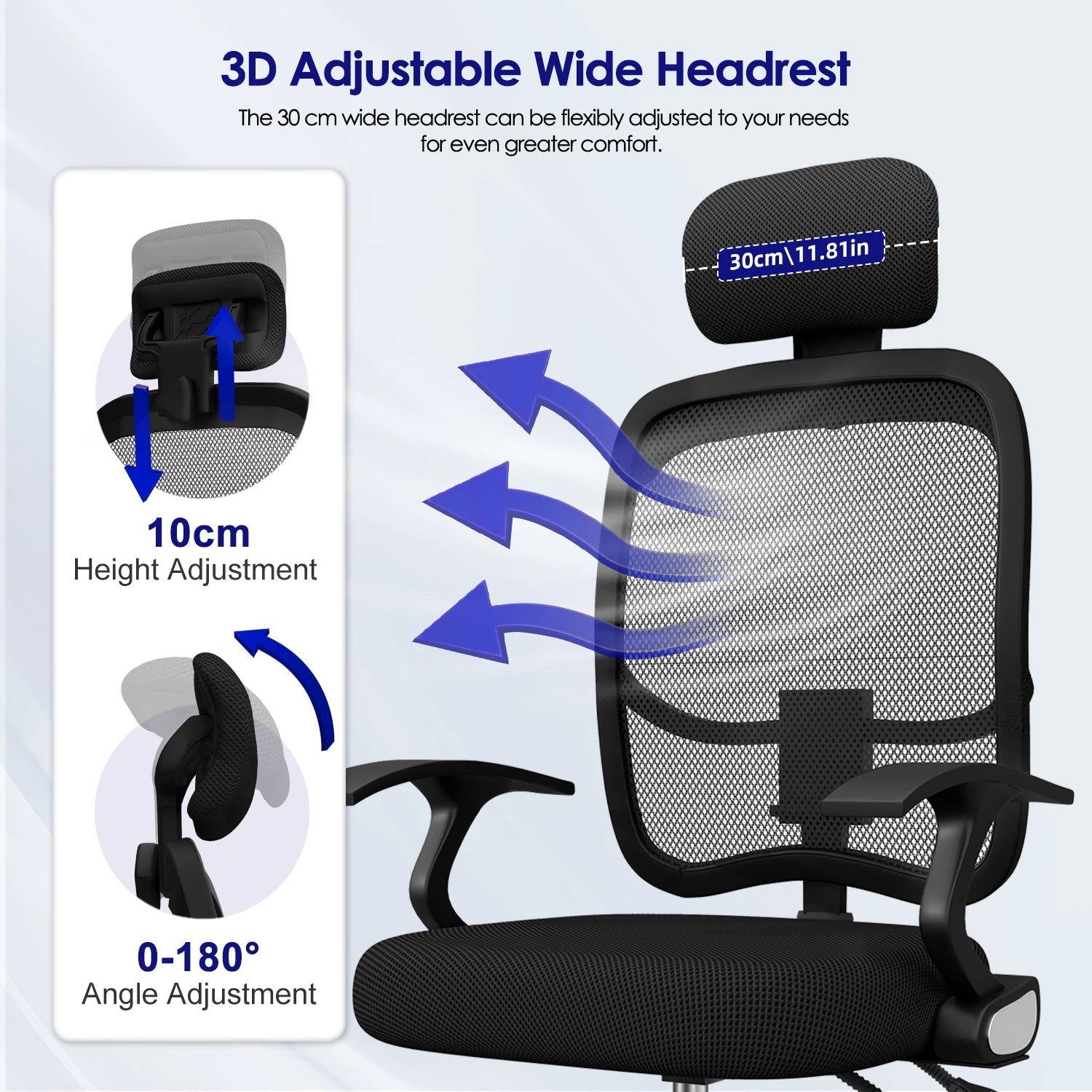 Daccormax Ergonomischer Bürostuhl, Mehrpunktstütze, verstellbare, atmungsaktive Netzrückenlehne, drehbarer Computer-Schreibtischstuhl mit Kopfstütze