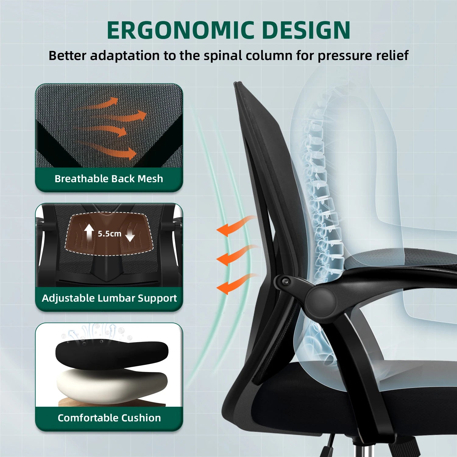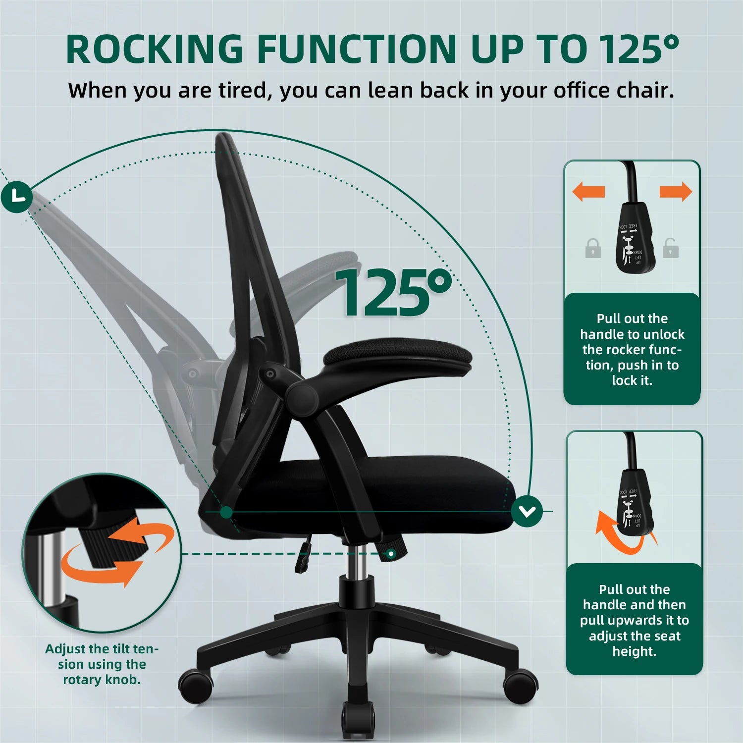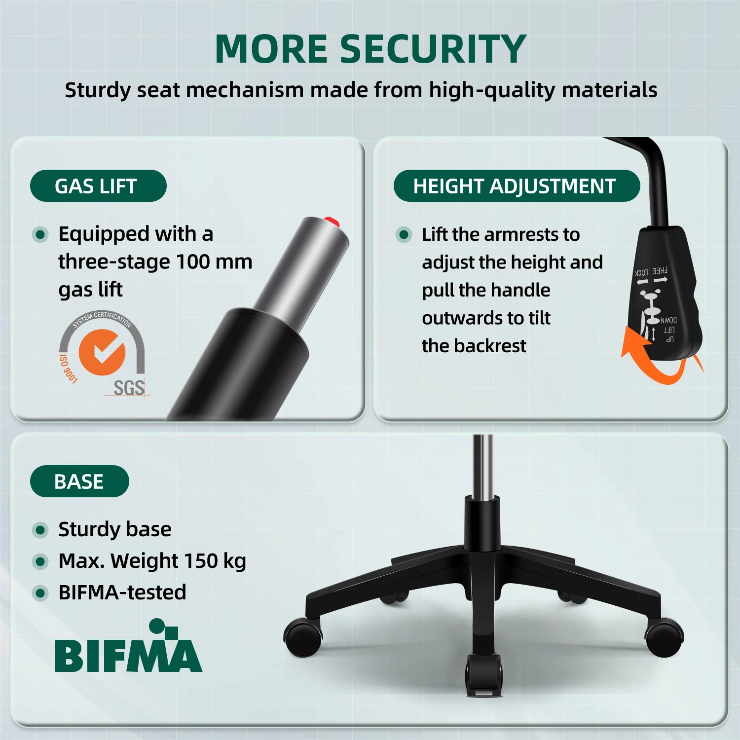 Daccormax Ergonomischer Bürostuhl, verstellbare Lordosenstütze, drehbar, robuste Rollen, gepolsterte Armlehnen, Multi-Neigefunktion zum Entspannen.