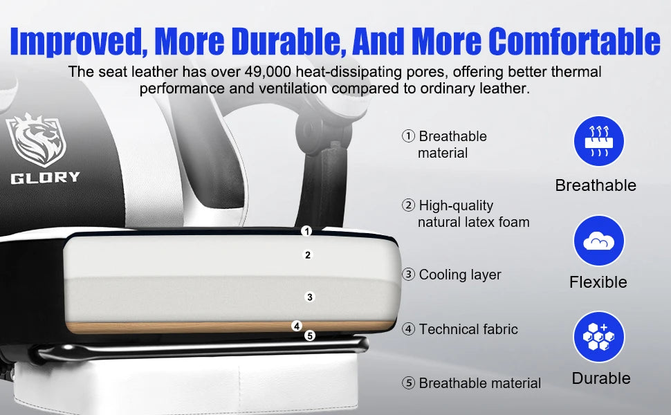 Daccormax Ergonomischer Gaming-Stuhl mit verstellbarer Lordosenstütze und Kopfstütze, Design mit hoher Rückenlehne + faltbarer Fußstütze für PC-Gamer