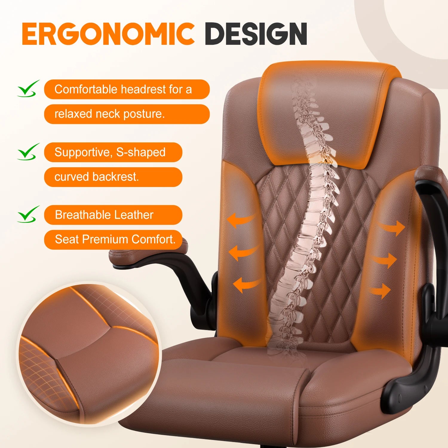 Daccormax Multifunktionaler Bürostuhl, Chefsessel aus hochwertigem Leder, bequeme Kopfstütze und Armlehnen, atmungsaktive Rückenlehne.