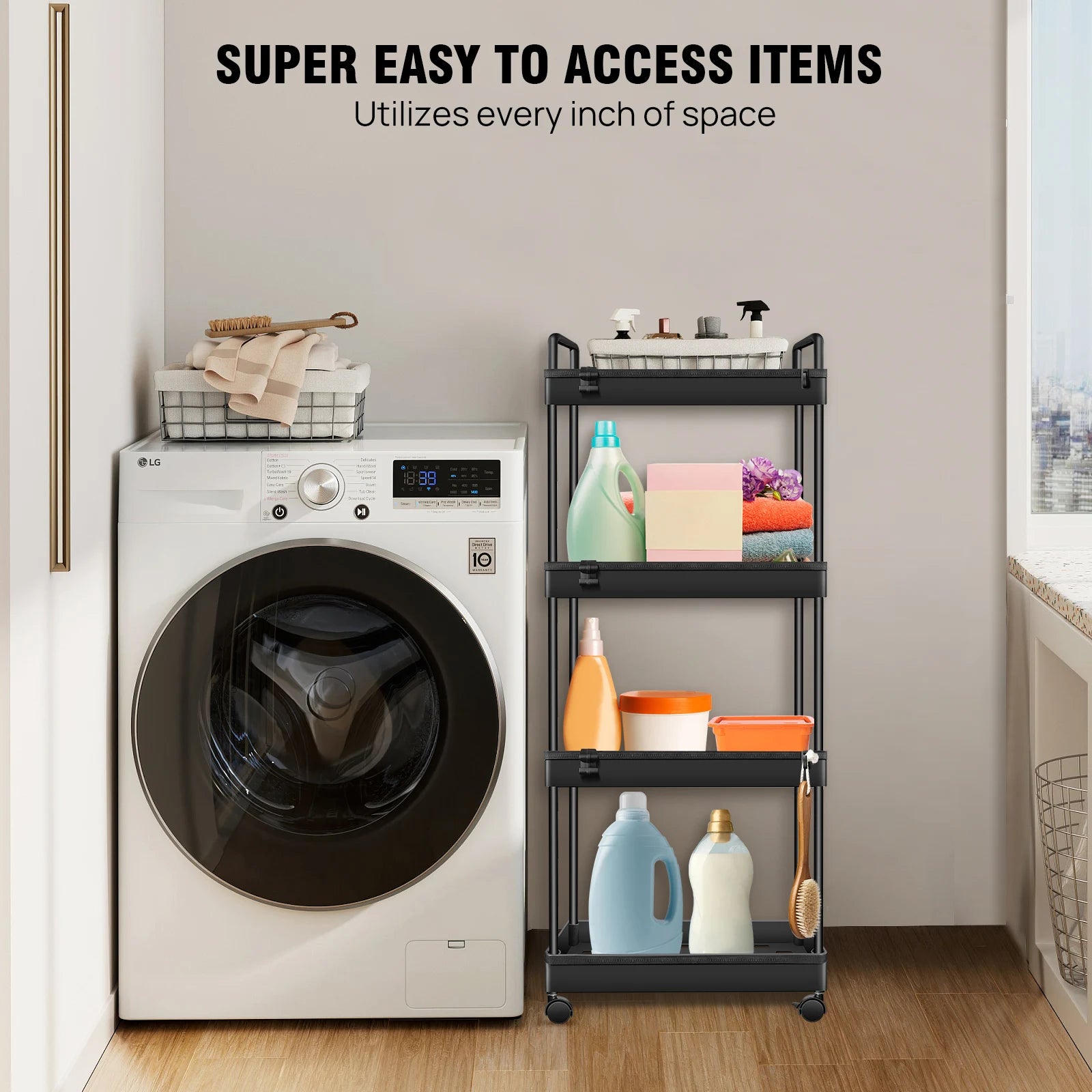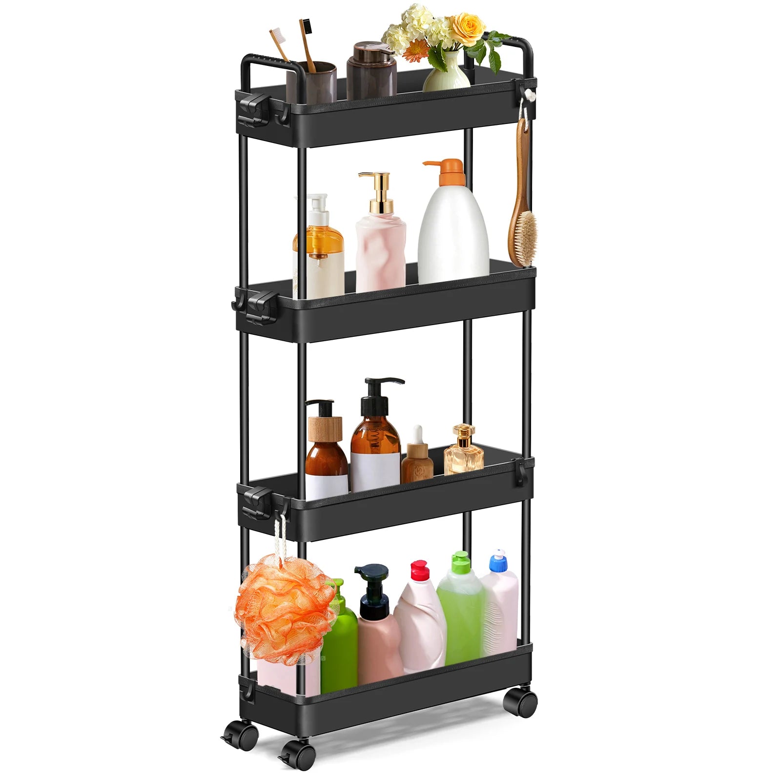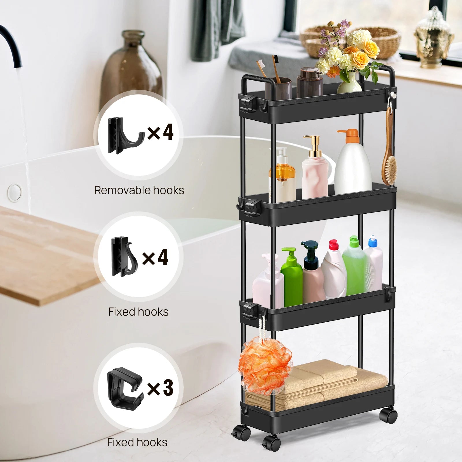 DayPlus 4-stufiger Aufbewahrungswagen, ausziehbarer, schlanker, rollender Mehrzweckwagen, multifunktionaler Badezimmerwagen aus Metall auf Rädern