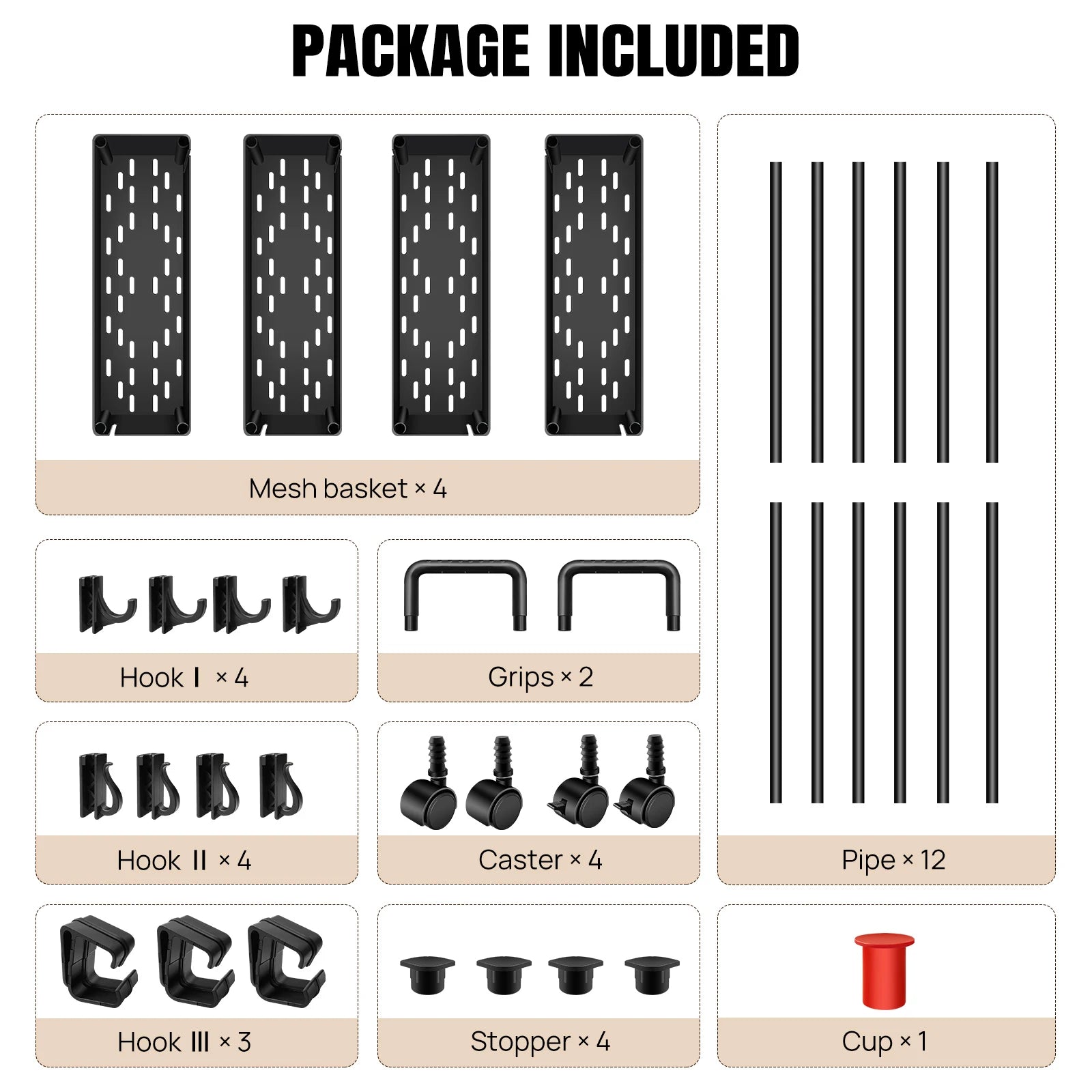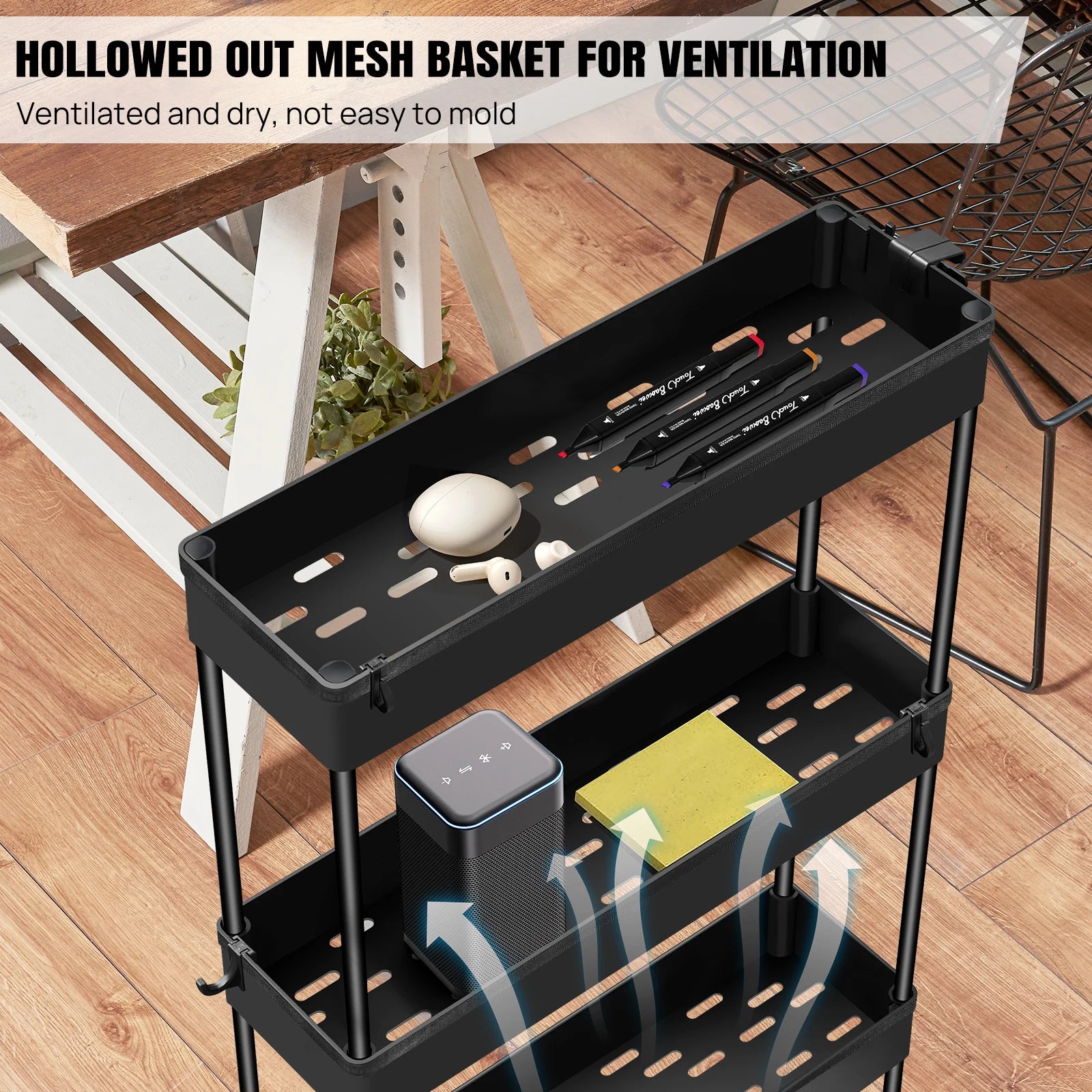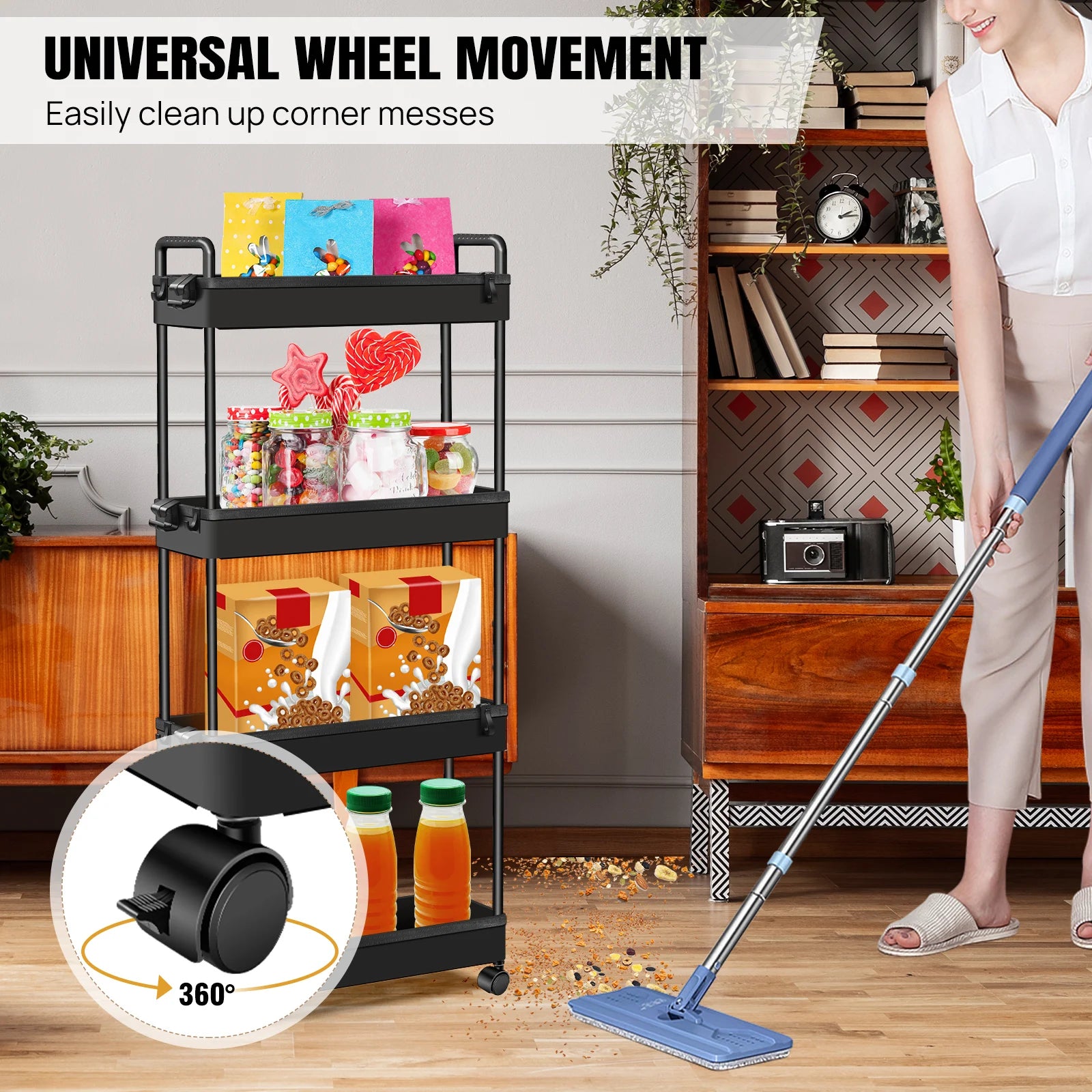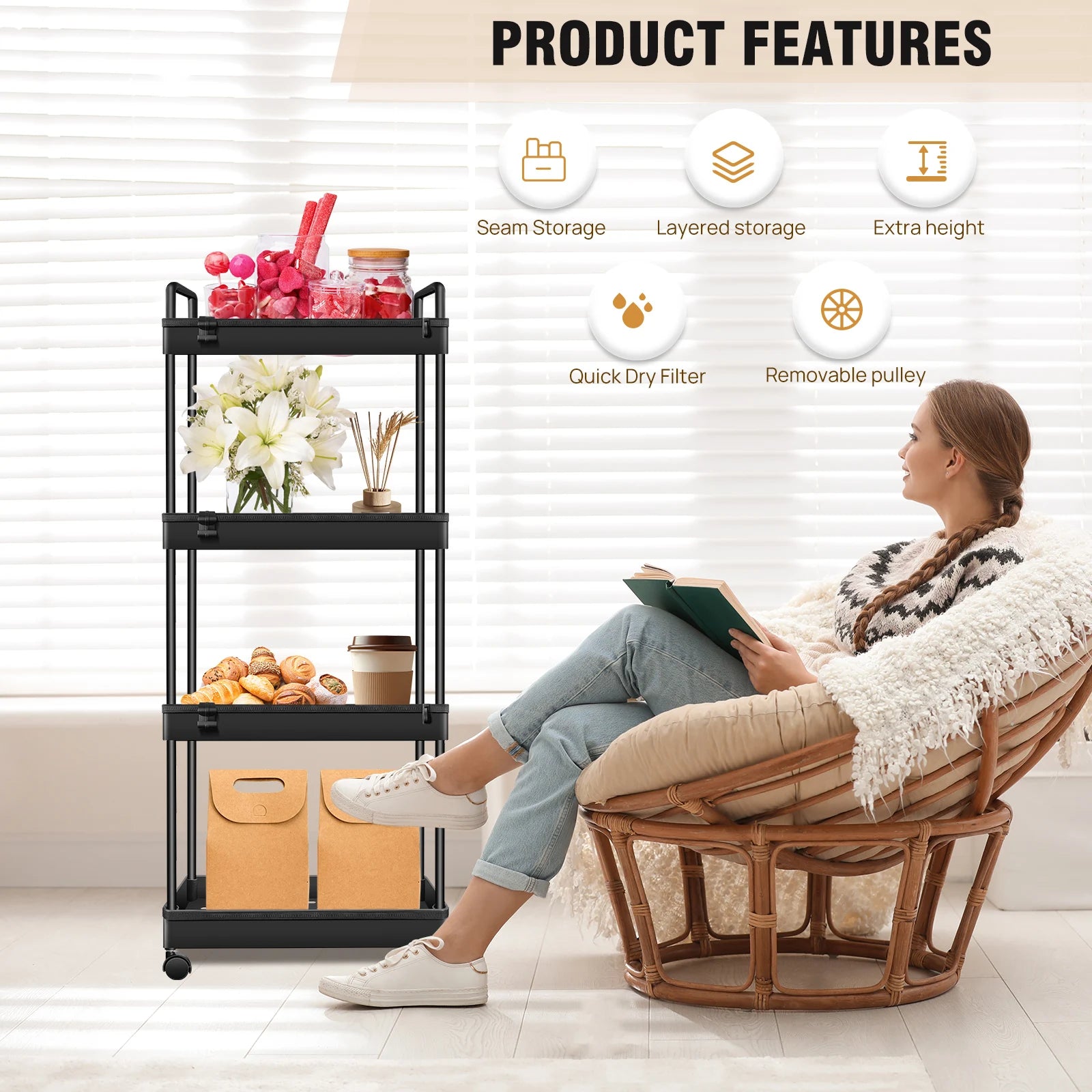 DayPlus 4-stufiger Aufbewahrungswagen, ausziehbarer, schlanker, rollender Mehrzweckwagen, multifunktionaler Badezimmerwagen aus Metall auf Rädern