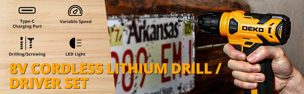 DEKO 126 Stück Elektrowerkzeug-Kombi-Sets mit 8 V Akku-Bohrschrauber, 10 mm 3/8 Zoll Schnellspannbohrfutter, professionelle Heim- und Haushalts-DIY-Handwerkzeug-Sets