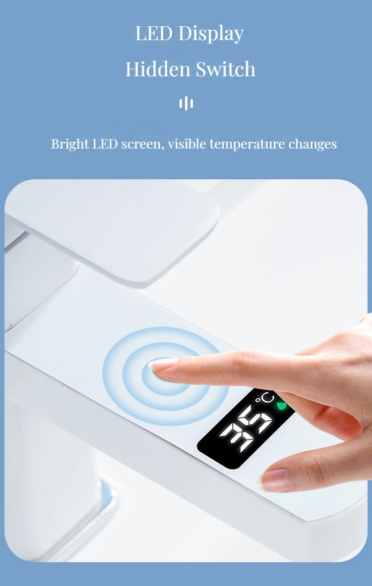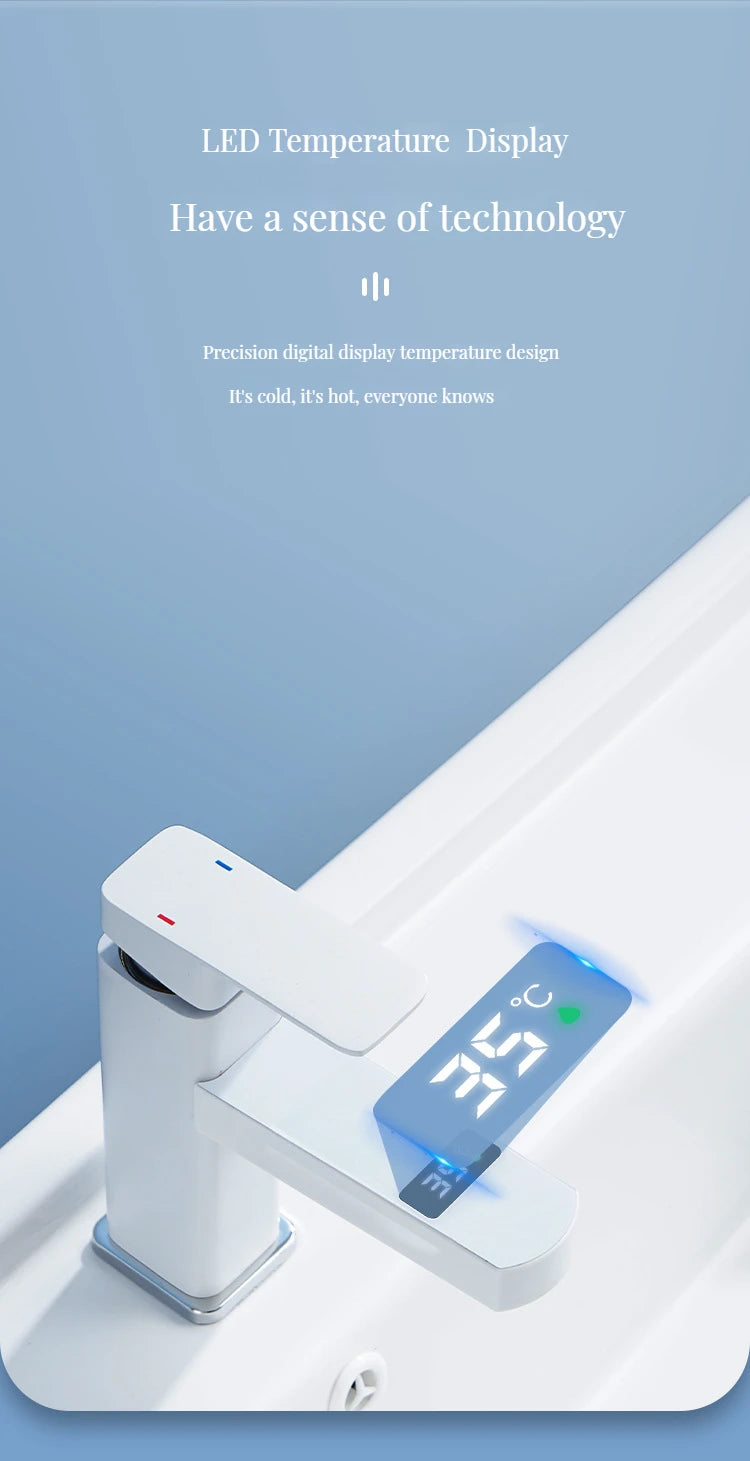 Digital Basin Faucets Smart Bathroom Faucet Shower Room Taps Water Temperature LED Black White Sink Tap Rotating Stainless Steel
