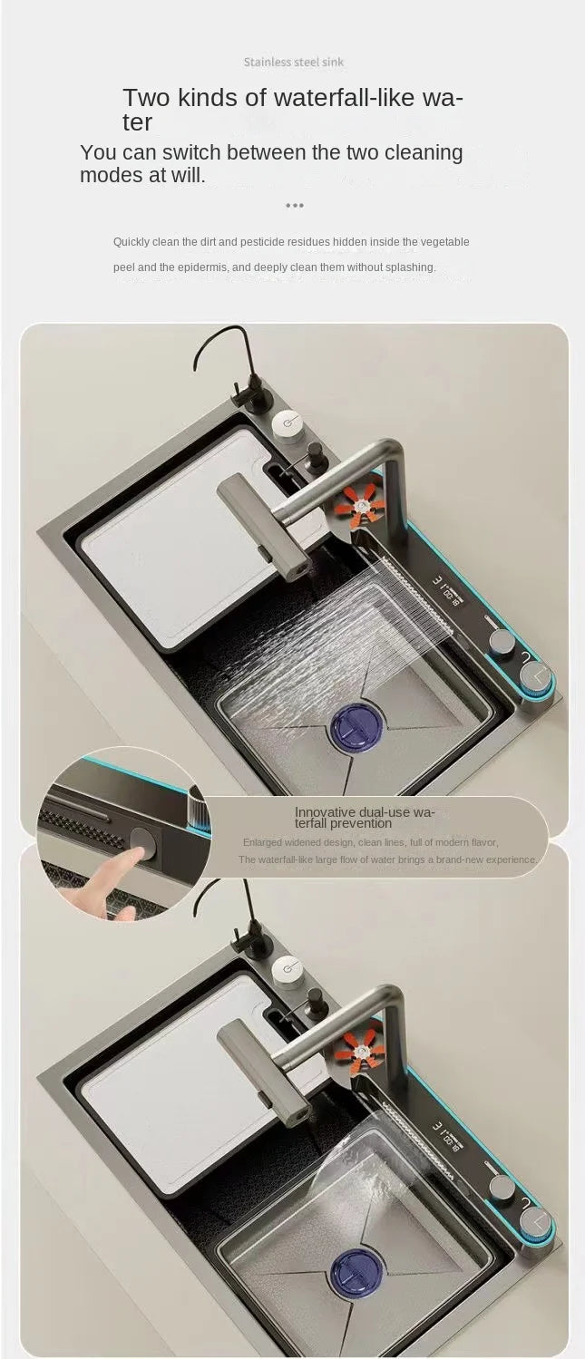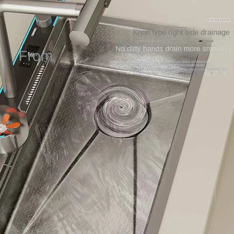 Digitalanzeige, Wasserfall, Einzelschlitz, Nano-Spüle aus Edelstahl 304, Geschirrspülen, Küche, multifunktionales Gemüsewaschbecken