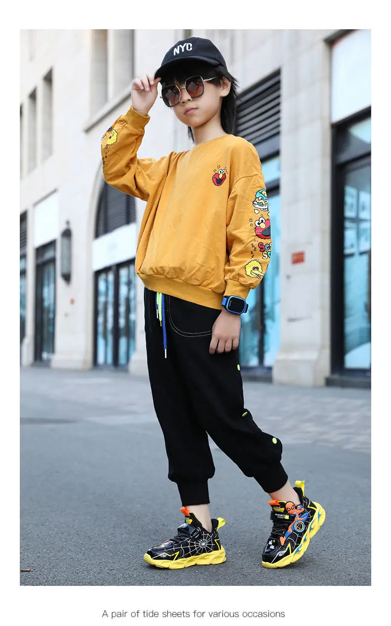 Disney Boys Shoes LED Lights Cartoon Autumn Children's Sports Shoes Leather Non-slip Children's Running Shoes Sneaker Size 25-35