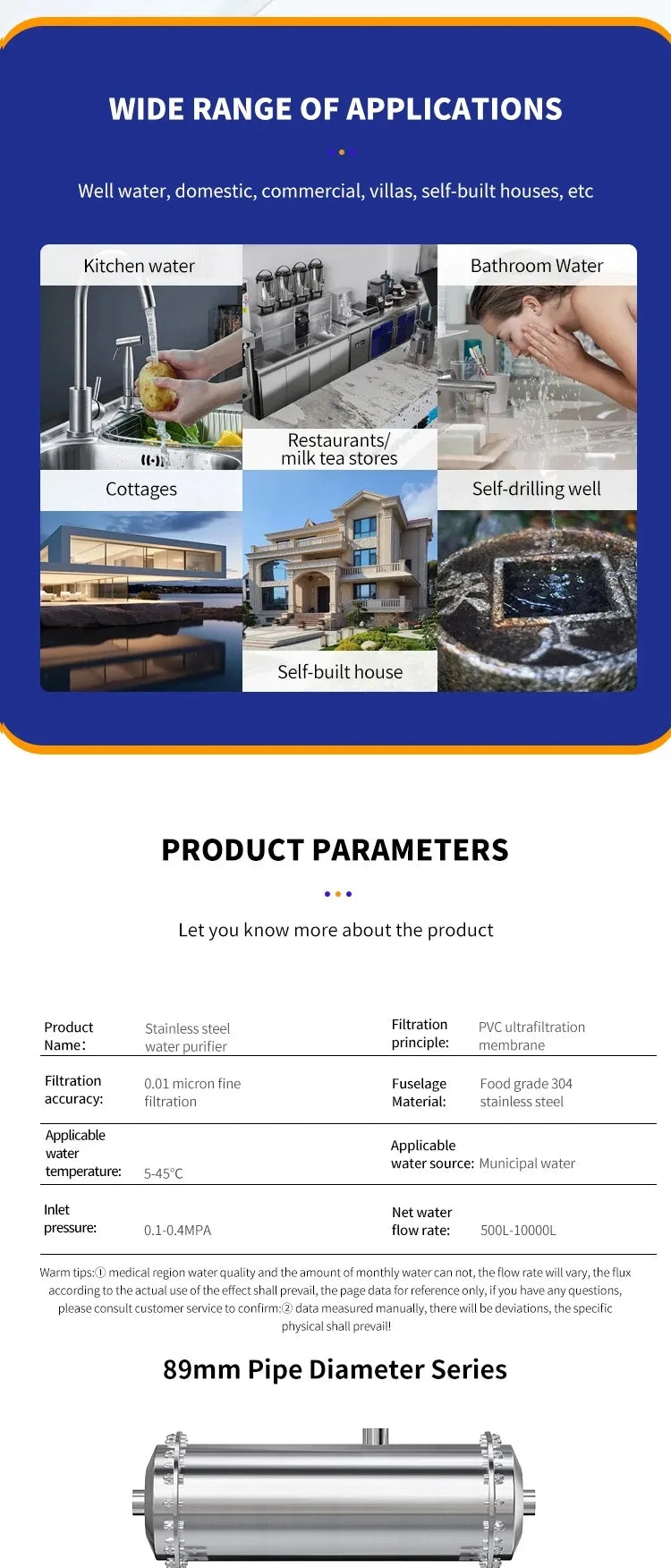 DIVEDEER 600L~3000L household water filter PVDF ultrafiltration purifier with washable pipe type direct drinking water kitchen