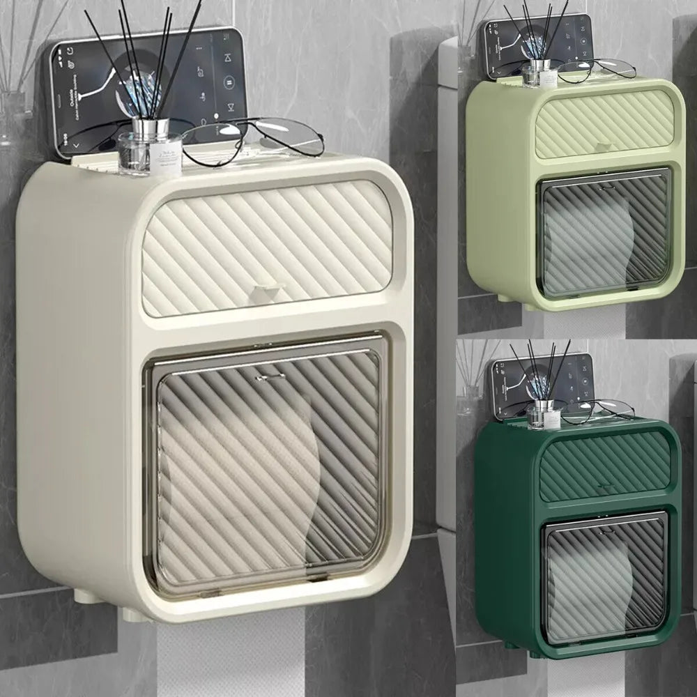 Doppelschichtiger Toilettenpapierhalter zur Wandmontage, ohne Bohren, für Badezimmer, Seidenrollenspender, Aufbewahrungsbox, Badezimmerzubehör