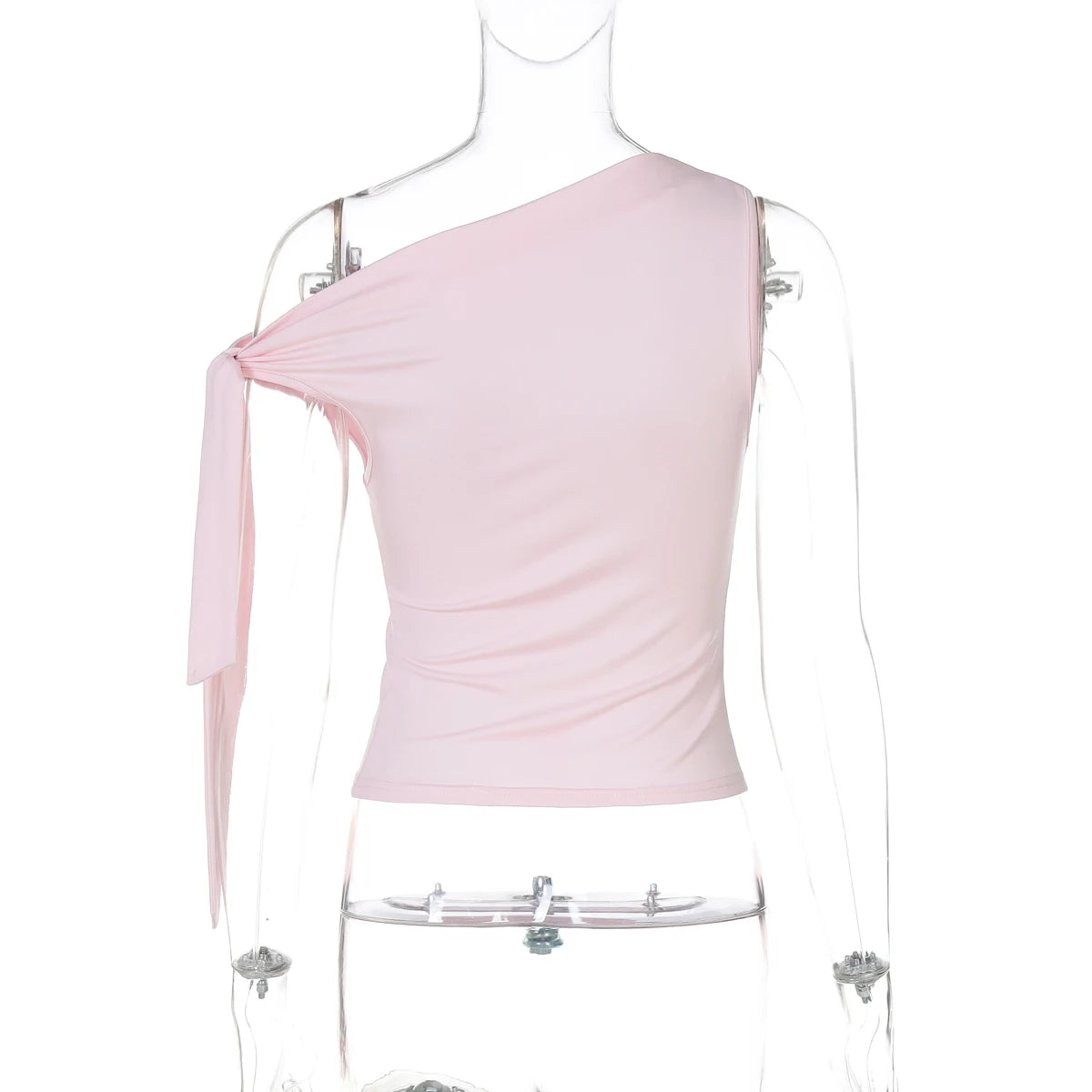 Dulzura Ladies Inclined Shoulder Sleeveless Slim Fit Lace Up Tank Top Solid Sexy Casual Y2K Top Party Club Street Summer Clothes