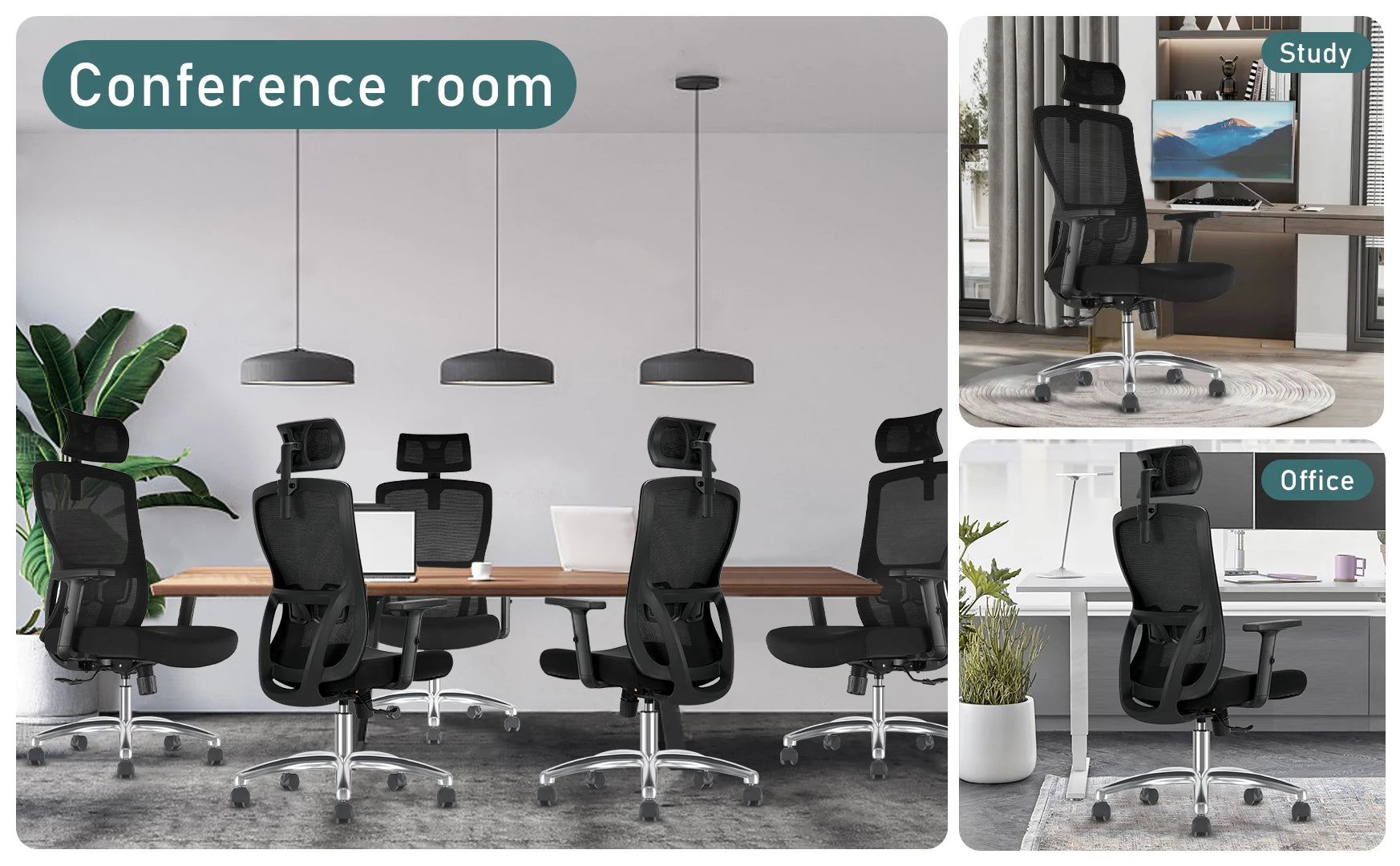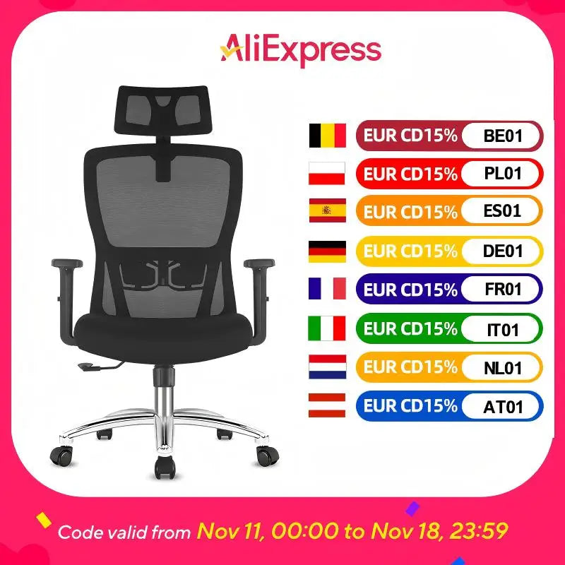 Durrafy Ergonomischer Bürostuhl, Schreibtischstuhl mit verstellbarer Kopfstütze, Armlehnen und Lordosenstütze, Netzdrehstühle, Schwarz