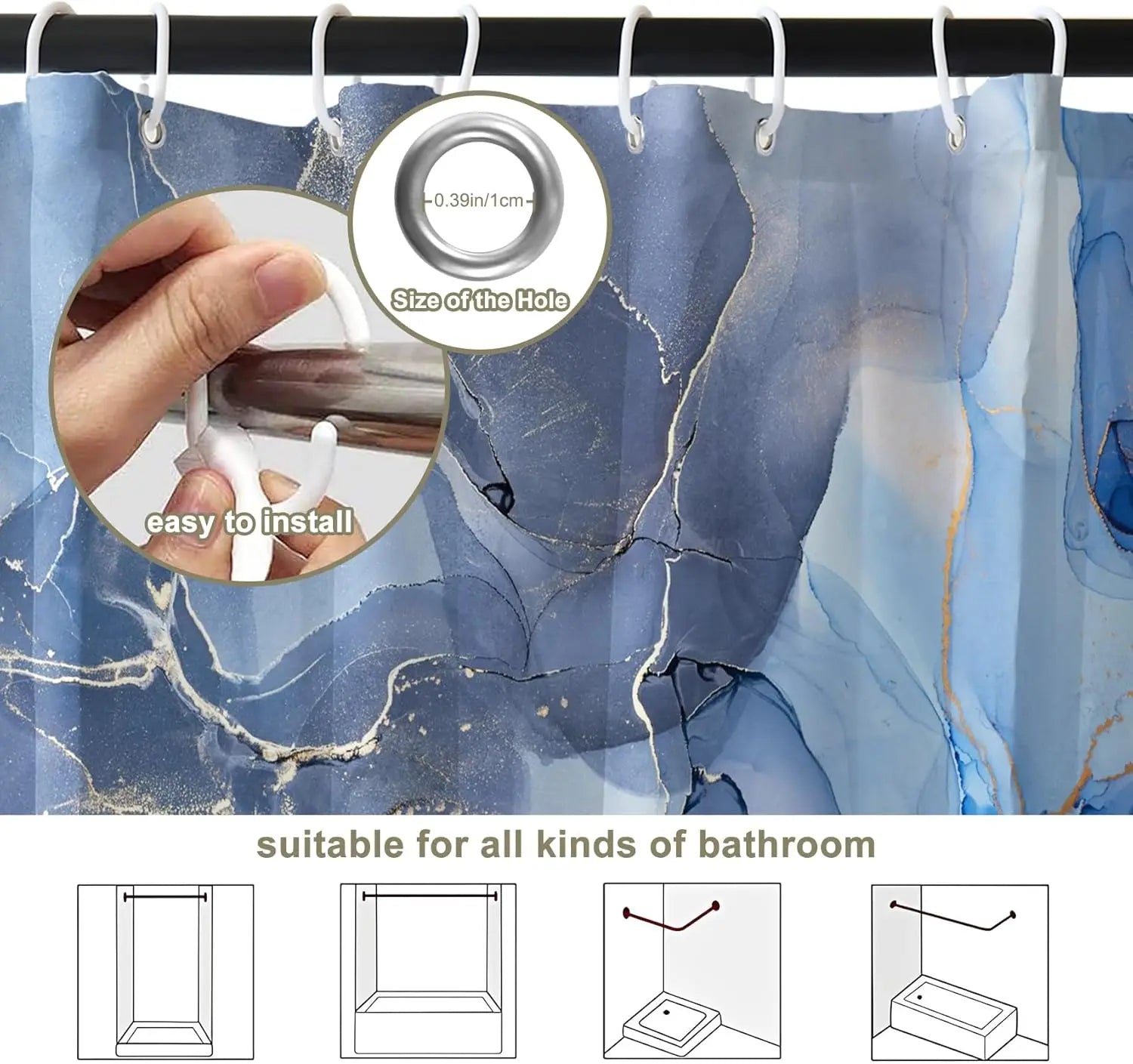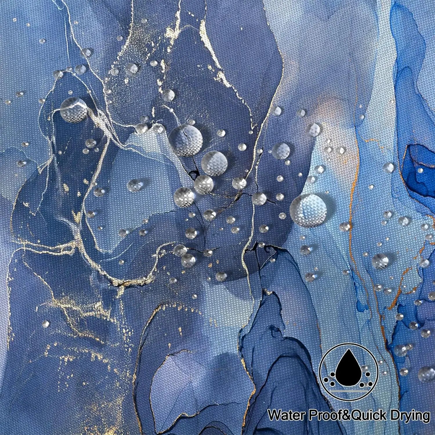 Duschvorhang aus blauem Marmor, blaues, modernes, luxuriöses, abstraktes Duschvorhang-Set für Badezimmer, Badvorhang aus Stoff mit Haken