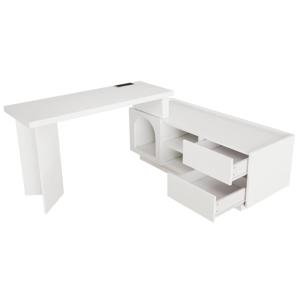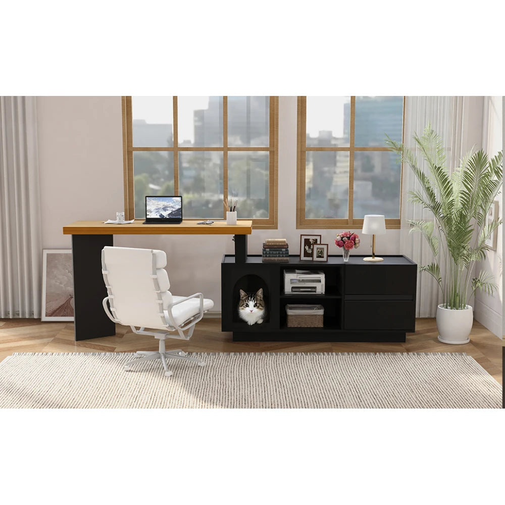 Eckschreibtisch mit integriertem Tierhaus, MDF-Eckschreibtisch aus verdicktem Brett für das Heimbüro mit XLanimal Cave L-förmiger Eckschreibtisch