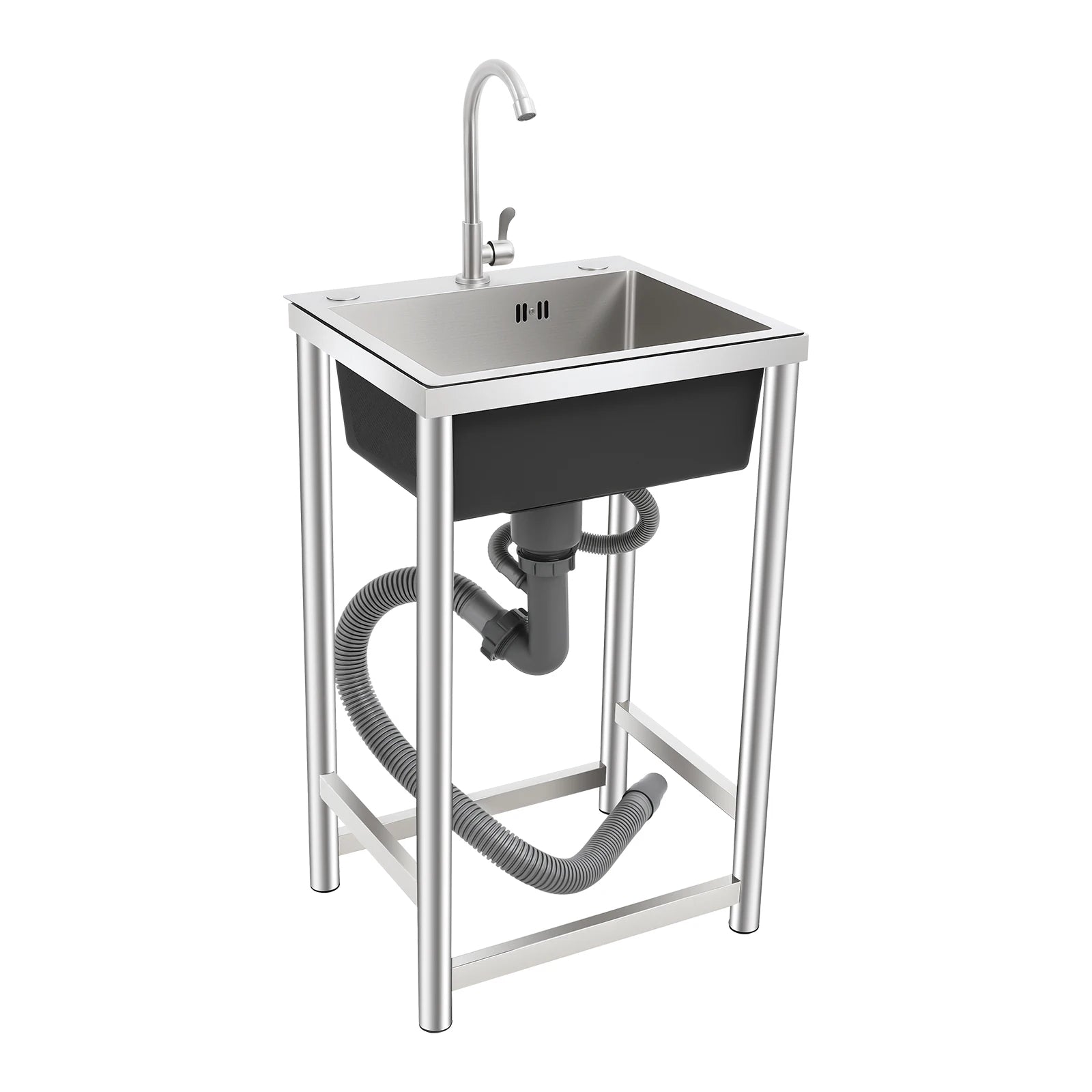 Edelstahl-Küchenspüle, Einzelbecken, 45,7 cm, mit Wasserhahn, geräuschloses Unterbau-Spülbecken aus gebürstetem 304-Waschbecken für die Küche, einfache Installation