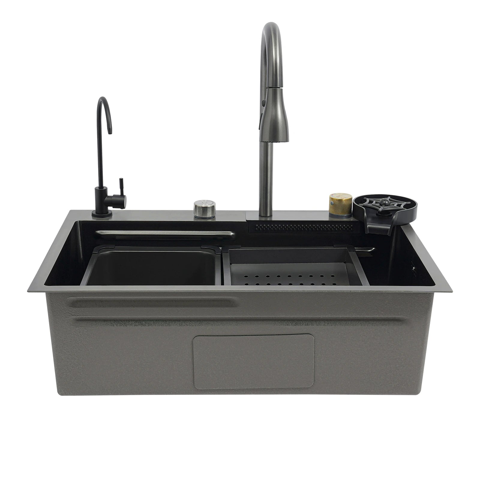 Edelstahl Rechteckige 68*45*21 cm Küche Waschbecken Große Single Slot Wasserhahn Set Seifenspender Tasse Waschmaschine