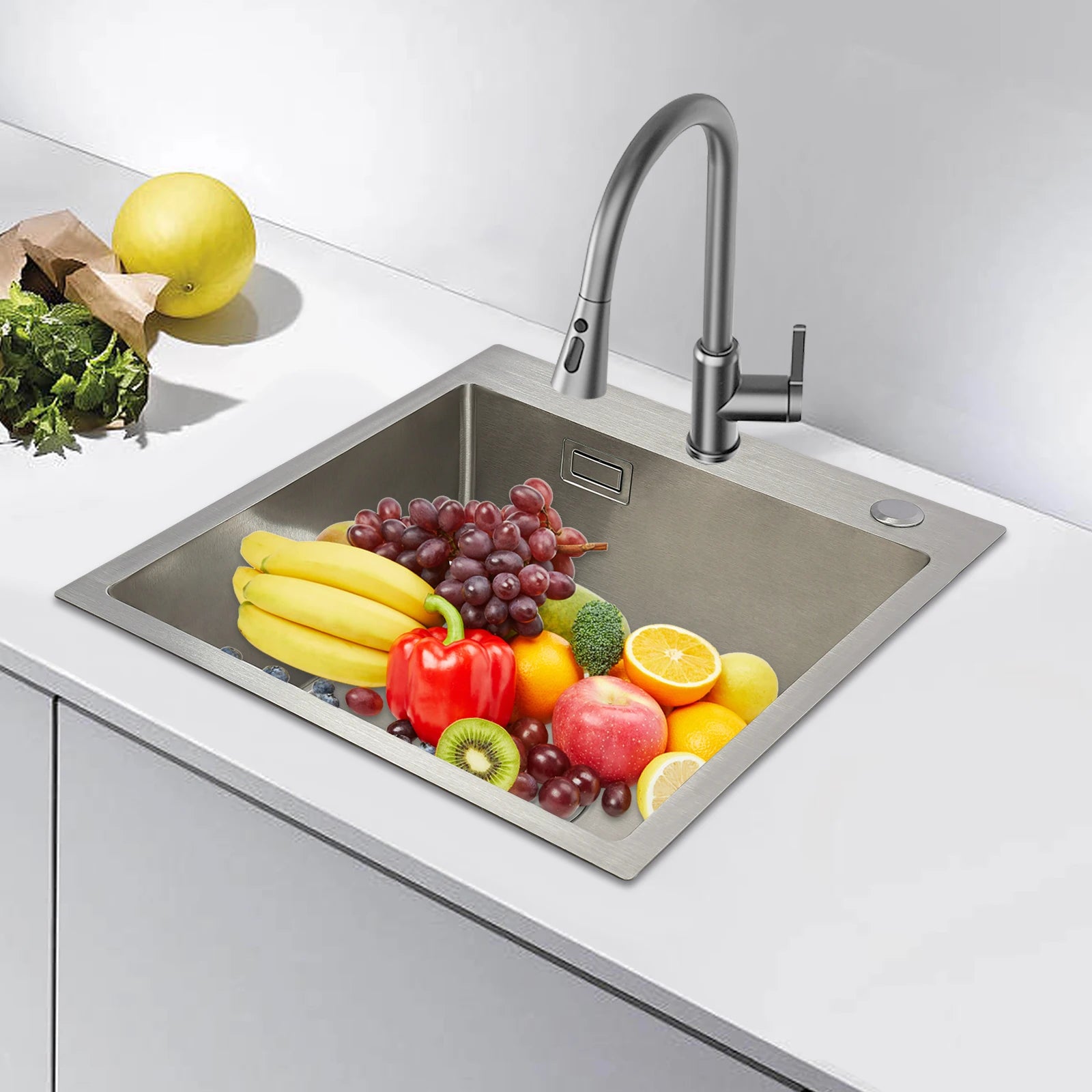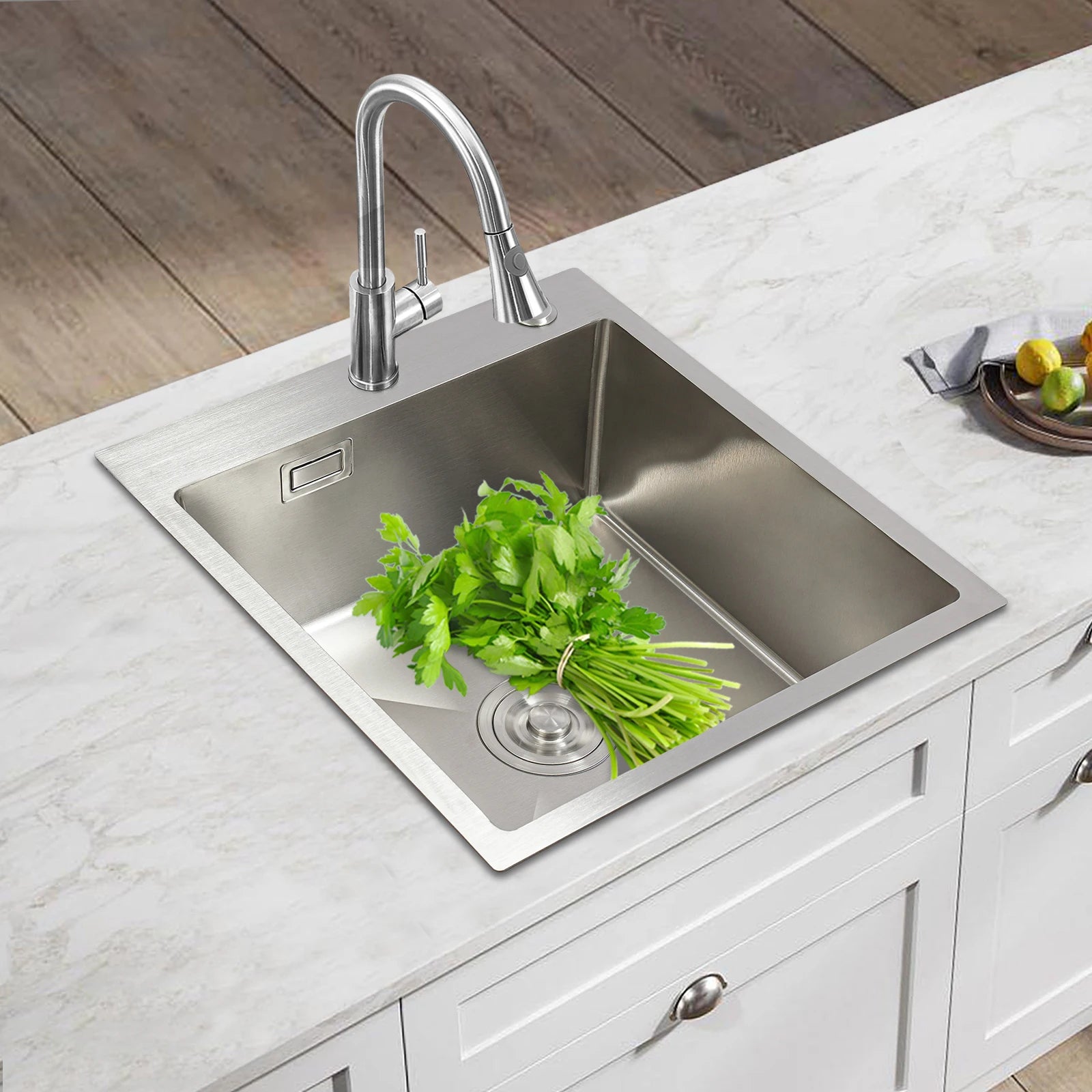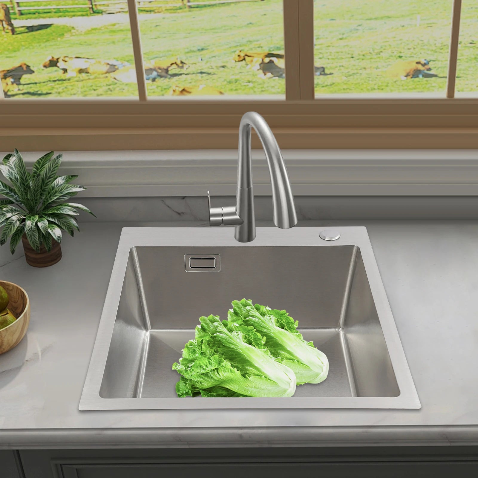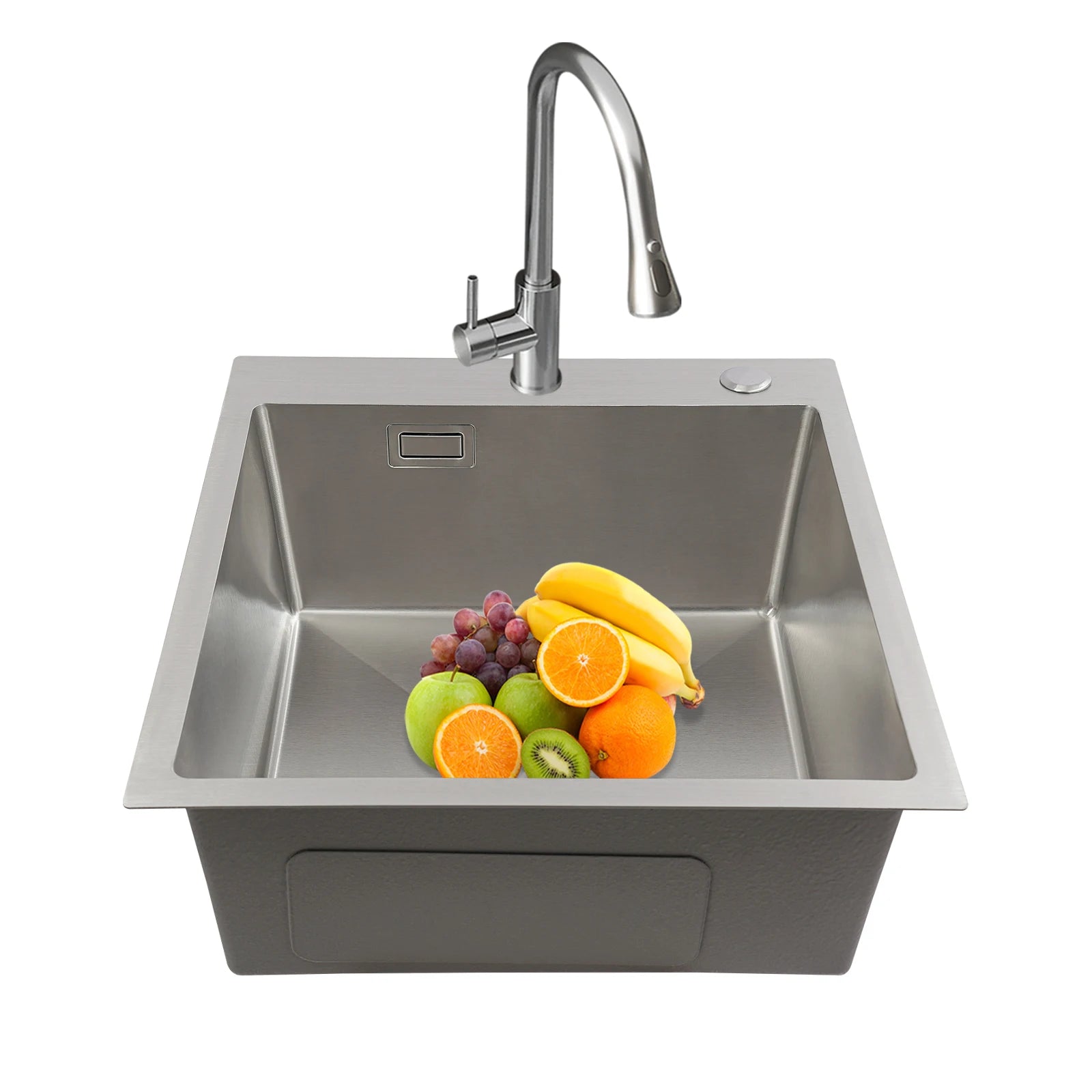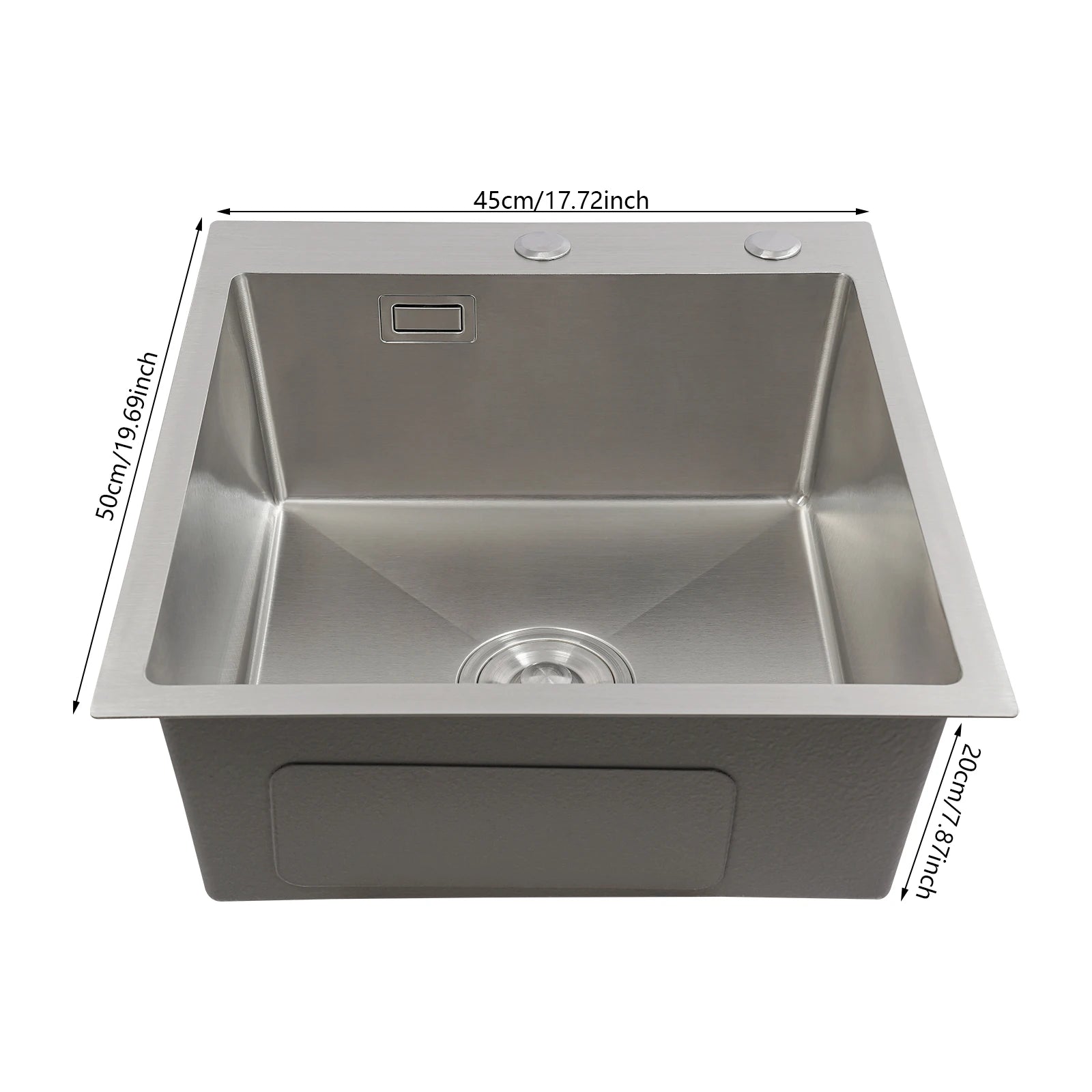 Edelstahlspüle, 45 x 50 cm, moderne Küchenspüle, Küchenspüle mit Abflussrohr, X-förmige Wassergleitungsleitung