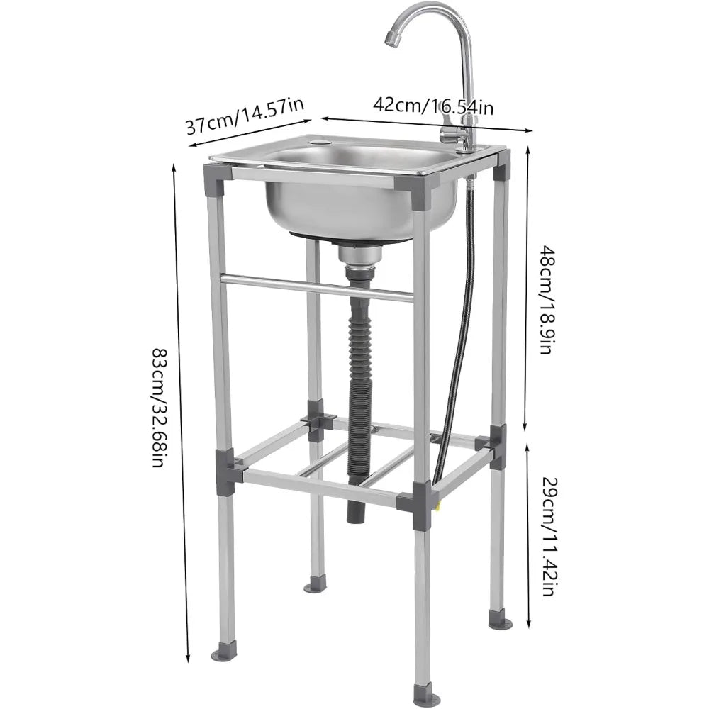 Edelstahlspüle, freistehendes Spülbecken mit 1 Becken, mobiles Spülbecken, Küchenspüle mit Wasserhahn, 42 x 37 x 83 cm, für Bars, Restaurant, Küche