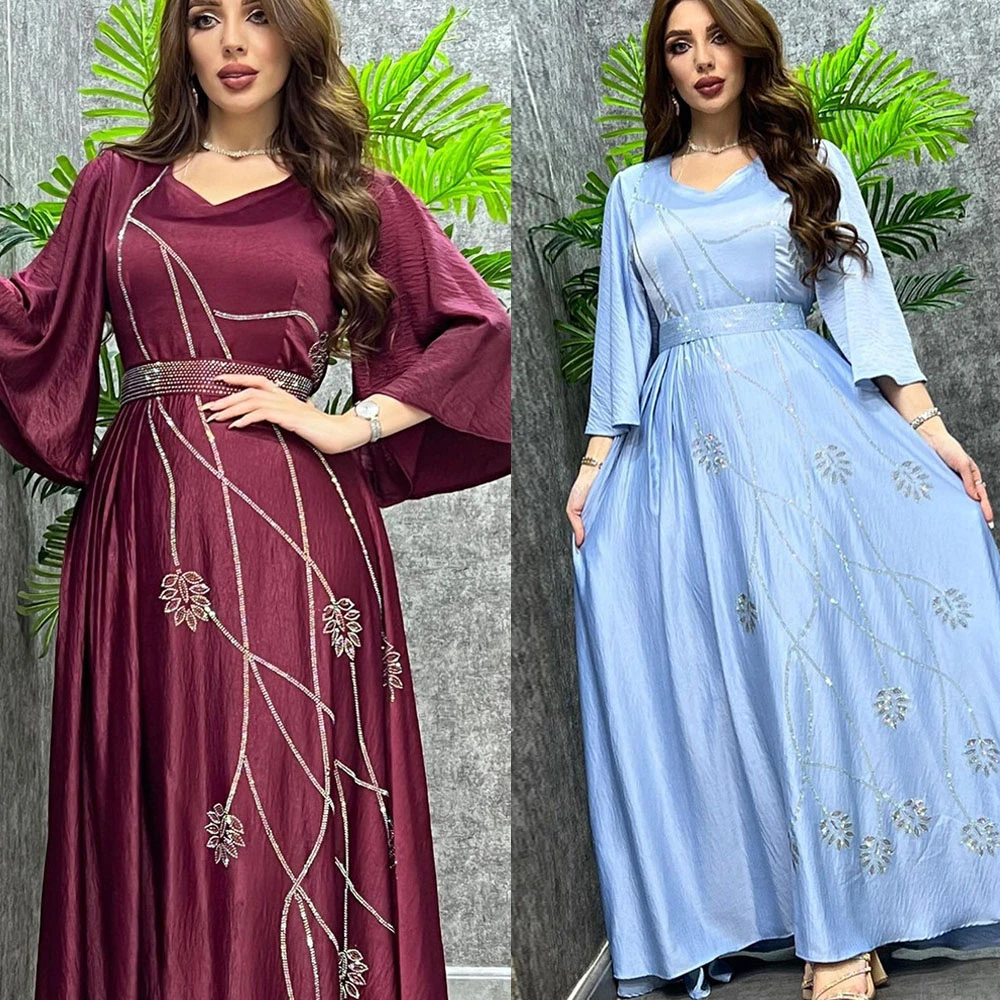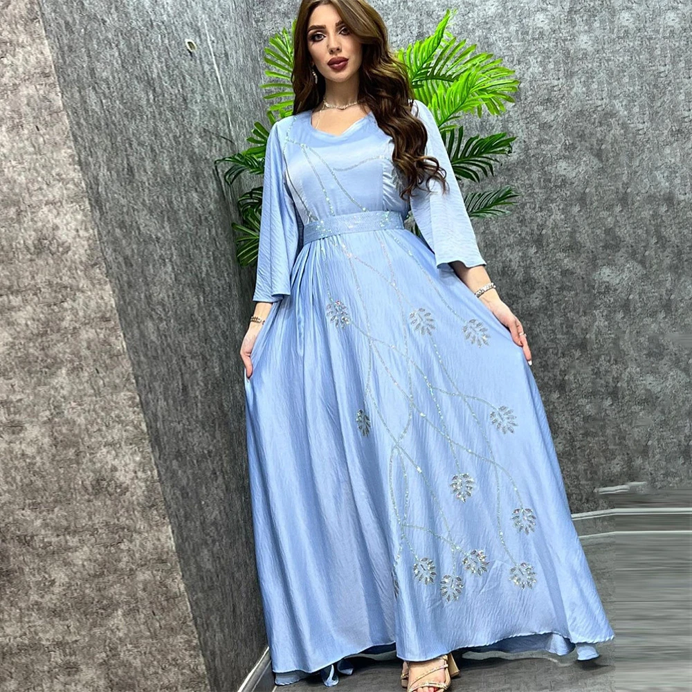 Eid Mubarak Djellaba Femme Diamanten Abaya Frauen Muslimischen Abend Party Kleid Dubai Türkei Kaftan Gürtel Jalabiya Islamische Robe Kleid