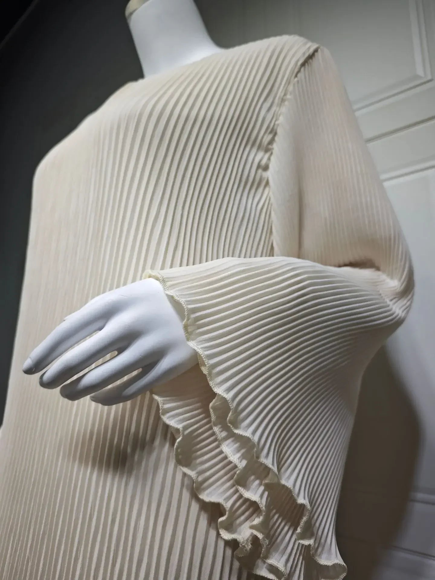 Eid muslimisches Kleid für Frauen Plissee Flare Ärmel Jalabiya Kaftan Islam Vestidos arabische lange Robe Ramadan Marokko Dubai Abayas