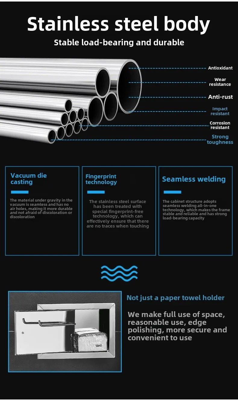 Einbau-Toilettenpapierrollenhalter in Mattschwarz, Aufbewahrungsbox für Seidenpapier aus Edelstahl für Badezimmer, Küche