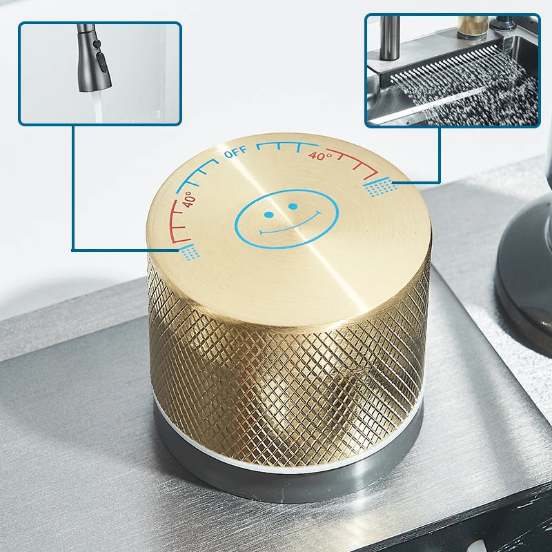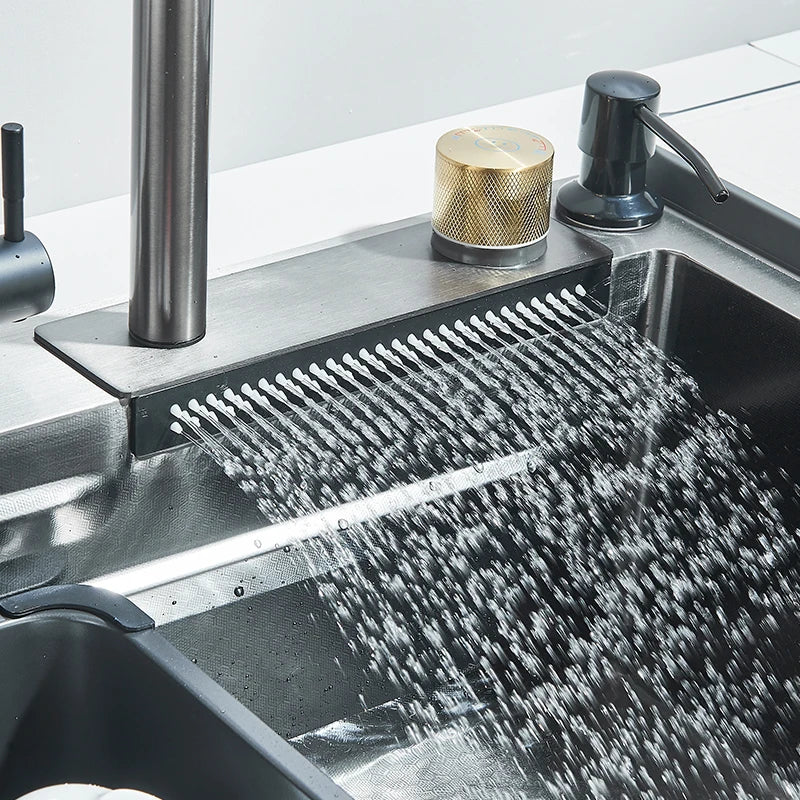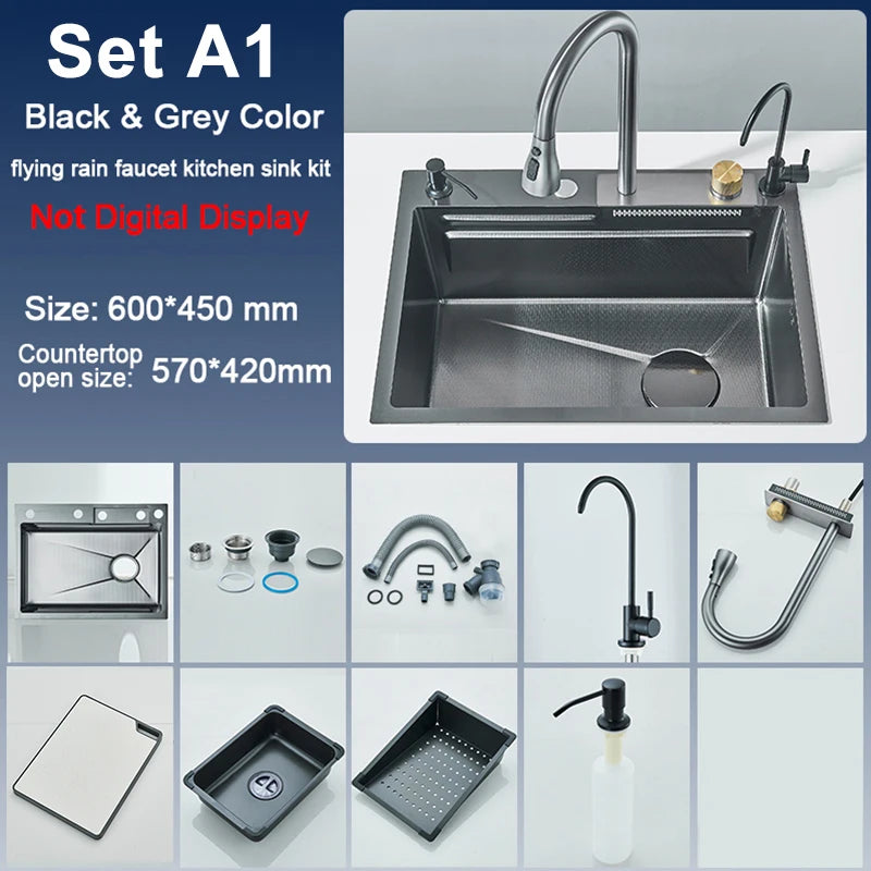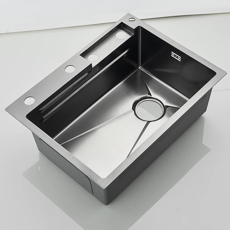 Einzelschlitz-Küchenspüle mit Wasserhahn, Edelstahl 304, groß, 60 x 45 cm, Niederschlag, 4 Funktionen, Spüle mit Seifenspender, Tassenwascher