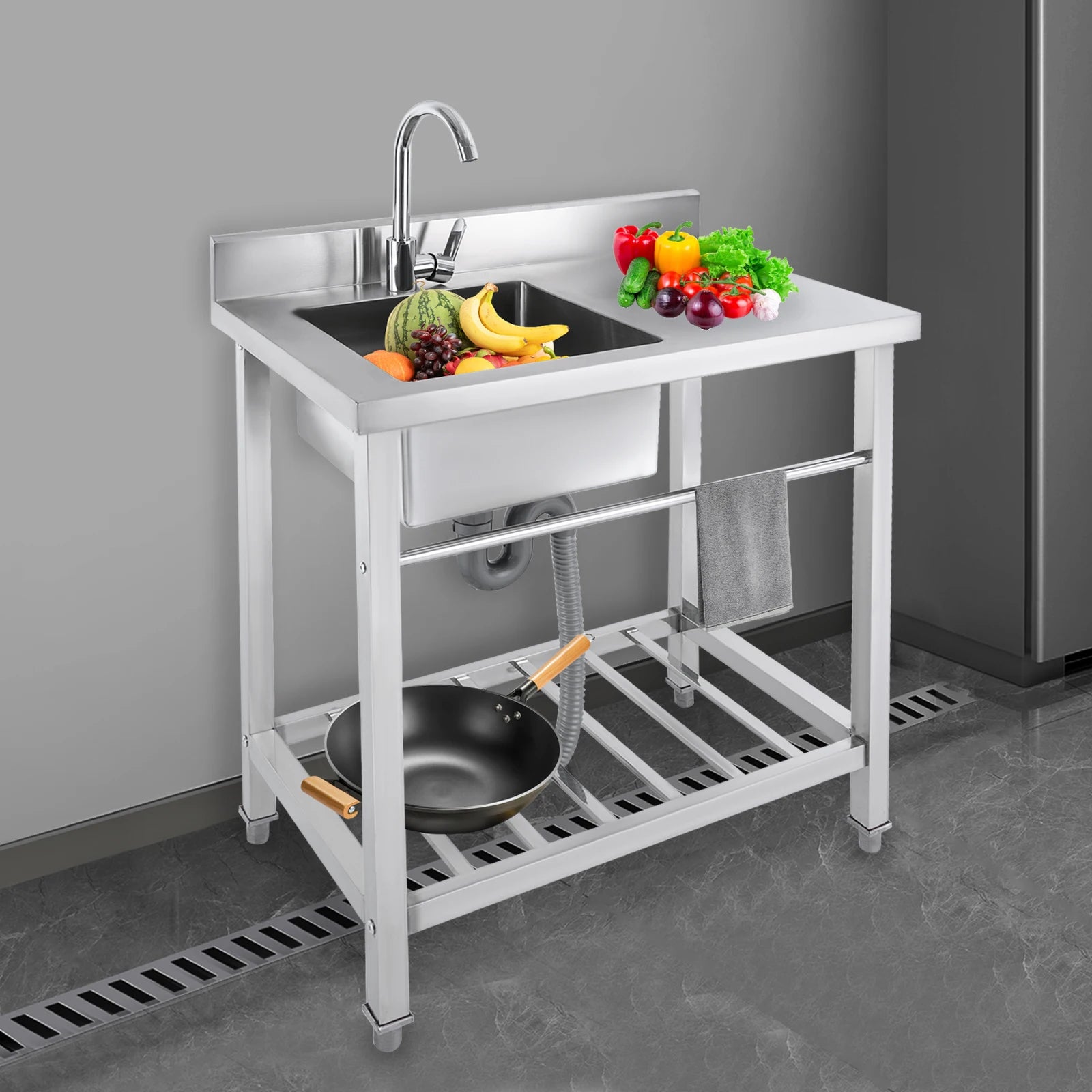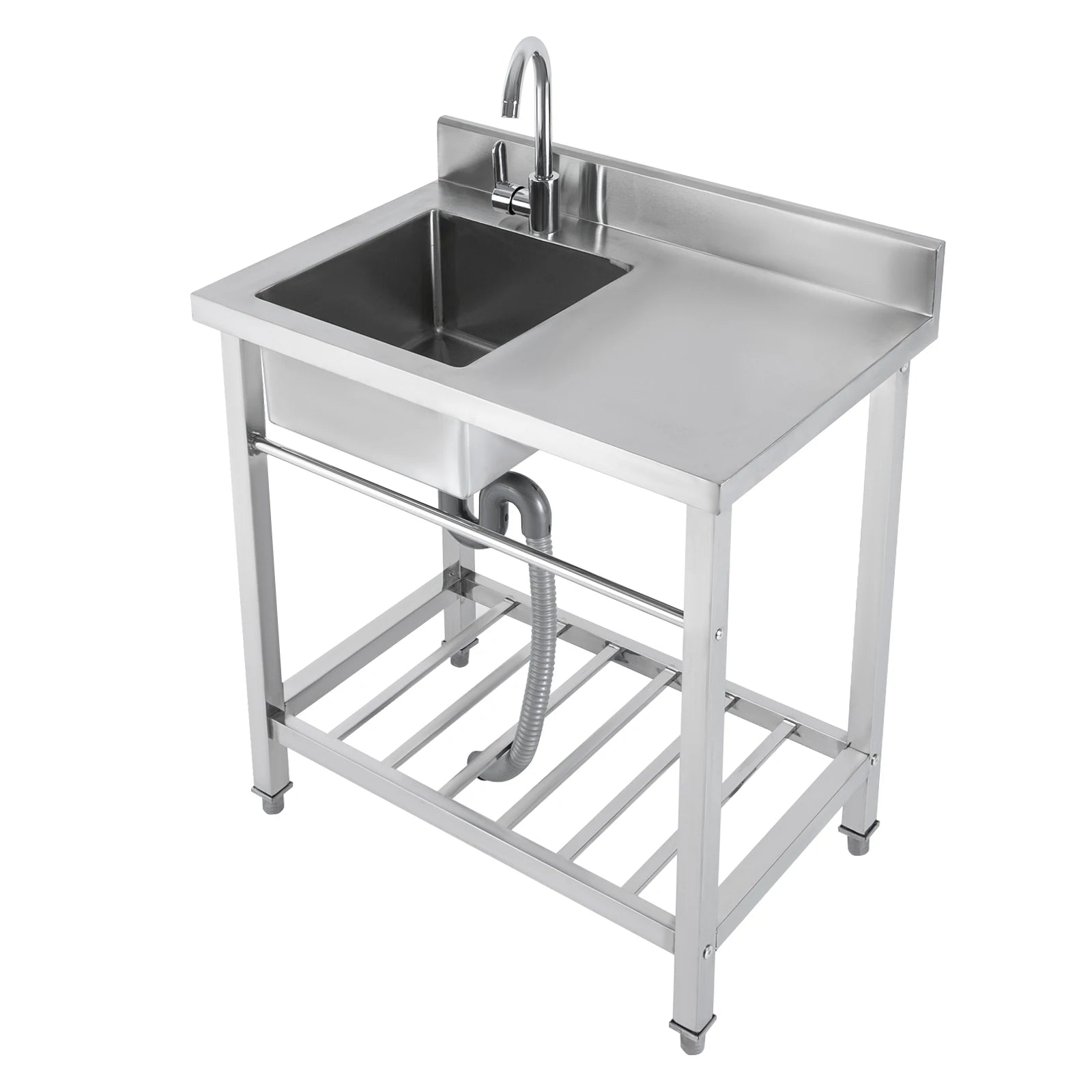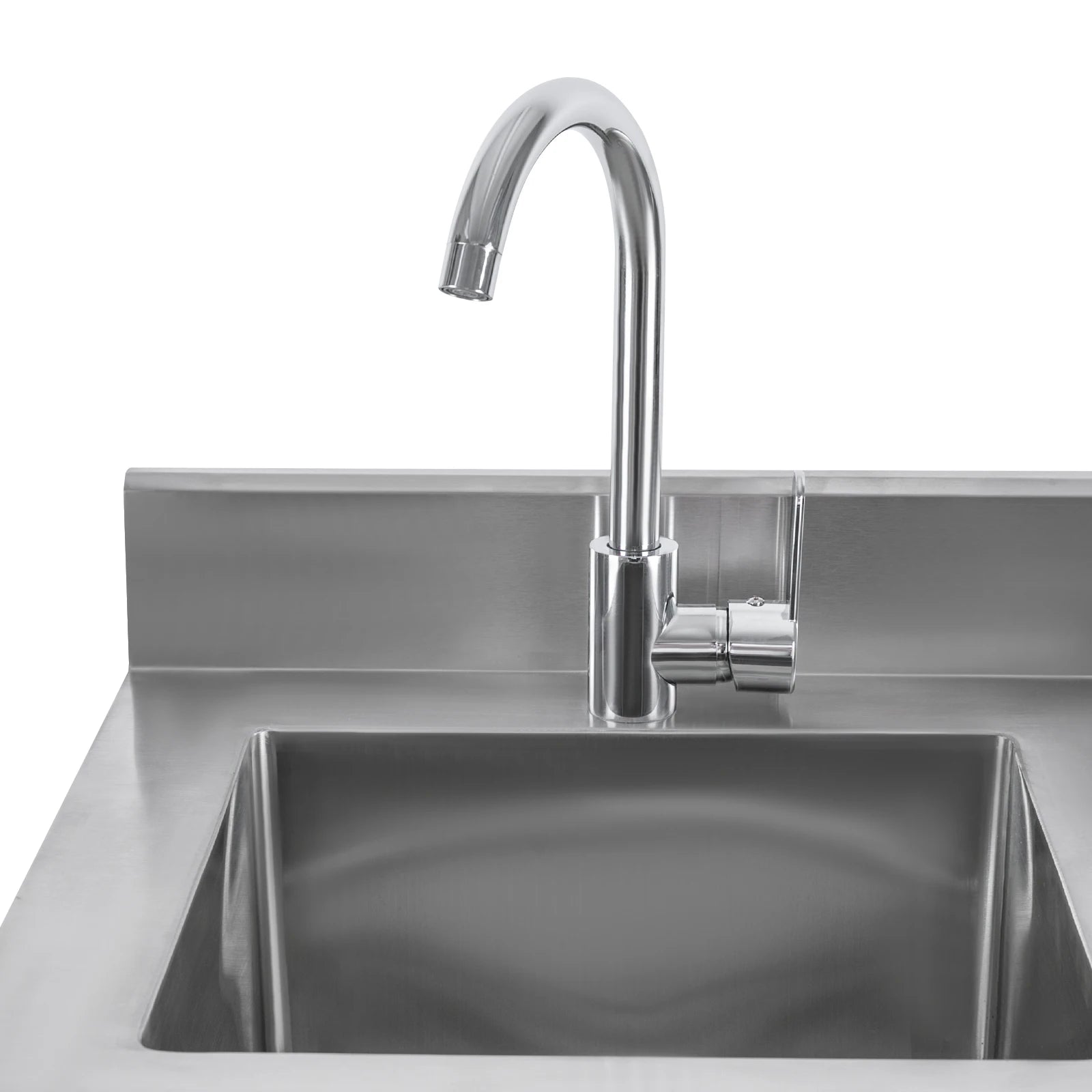 Einzelwaschbecken aus Edelstahl, kommerzielle Restaurant-Küchenspüle, freistehende Küchenspüle mit 360° ° Wasserhahn und 2 Einlassrohren