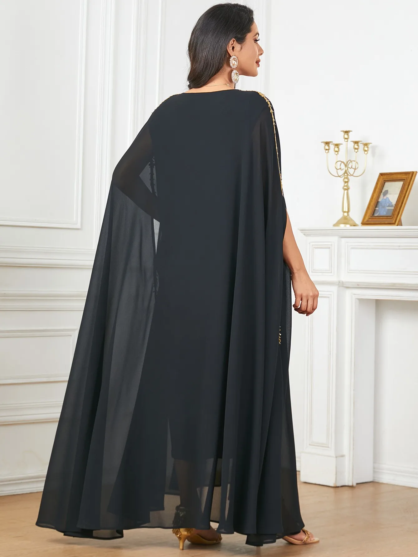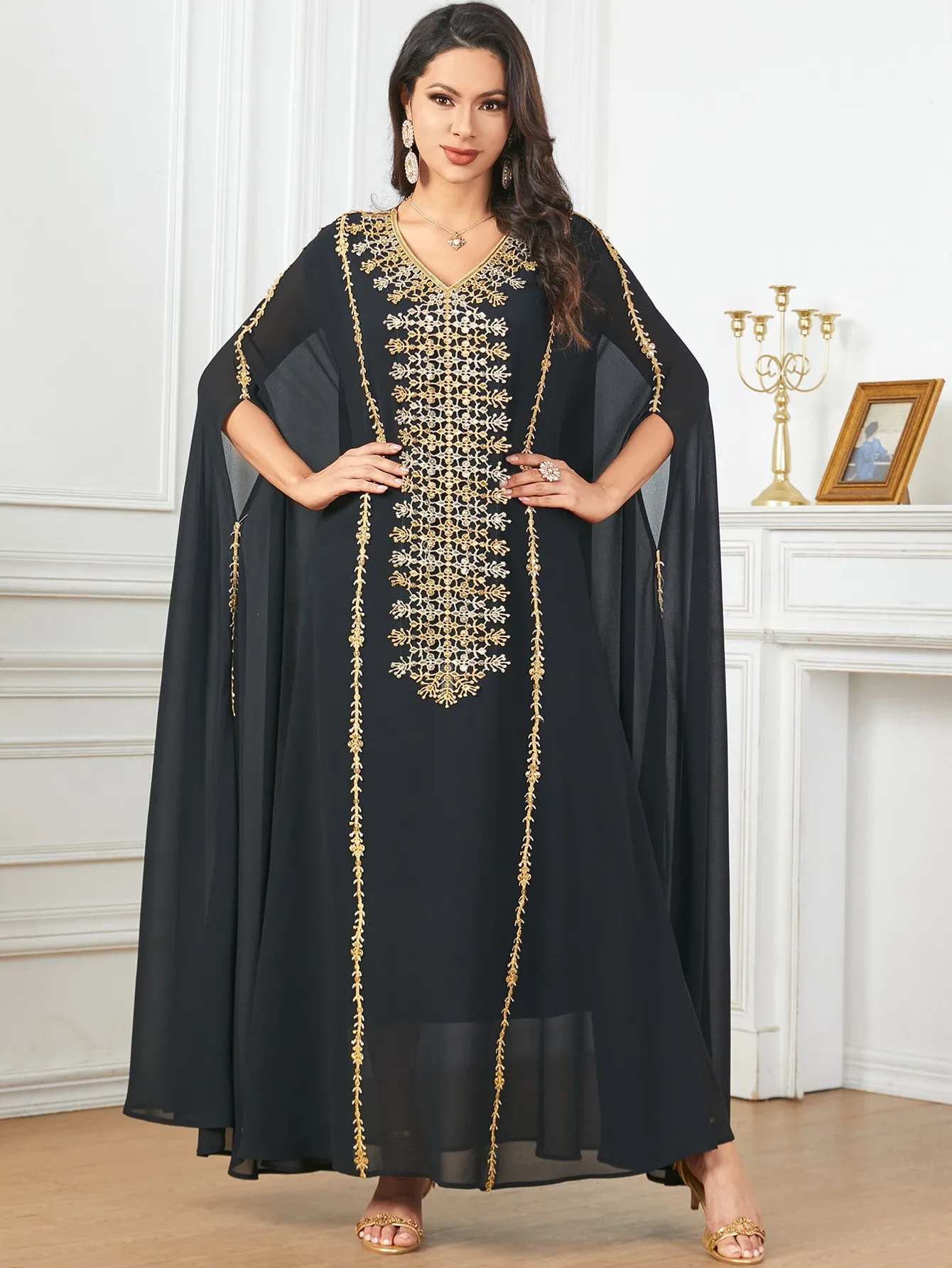 Ele Long Sve bestickt Faion Dr Heavy Work Batwing Sve Robe Sle hohe Taille Frühling Sommer Herbst Damen Dr