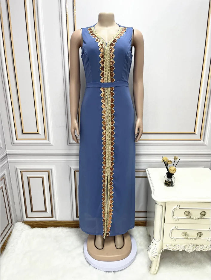 Elegant Muslim Abaya for Women Dress 2 Piece Set Chiffon Cloak Caftan Indian Party Dresses Sequins Kinono Robe Vestidos Abayas