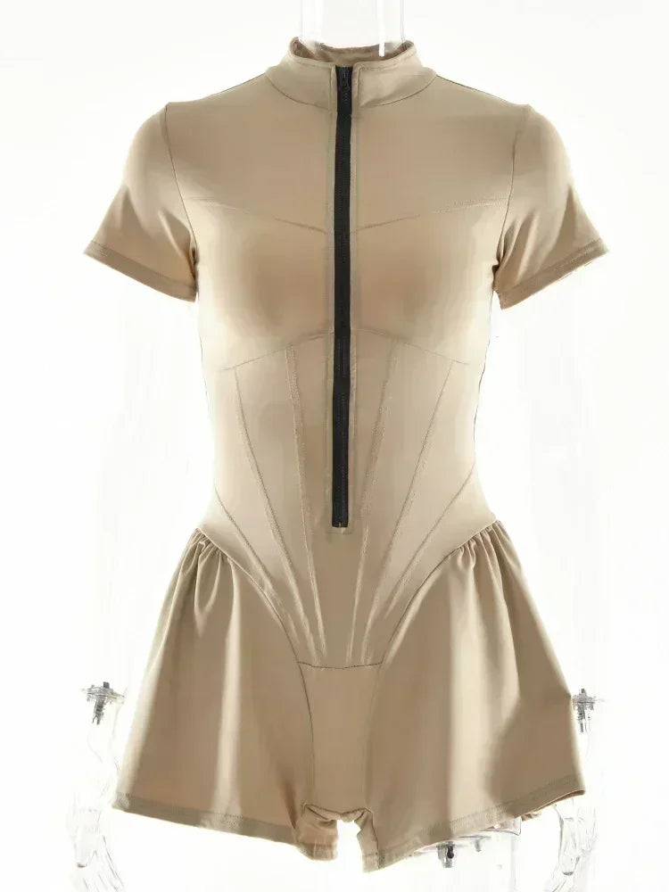 Elegant Women Zip-up O-neck Long Sleeve Jumpsuit Streetwear 2025 Summer Autumn Female Overalls One Piece Fitness Sports Bodysuit