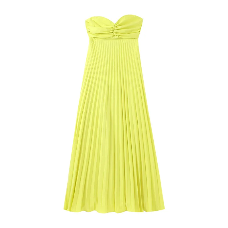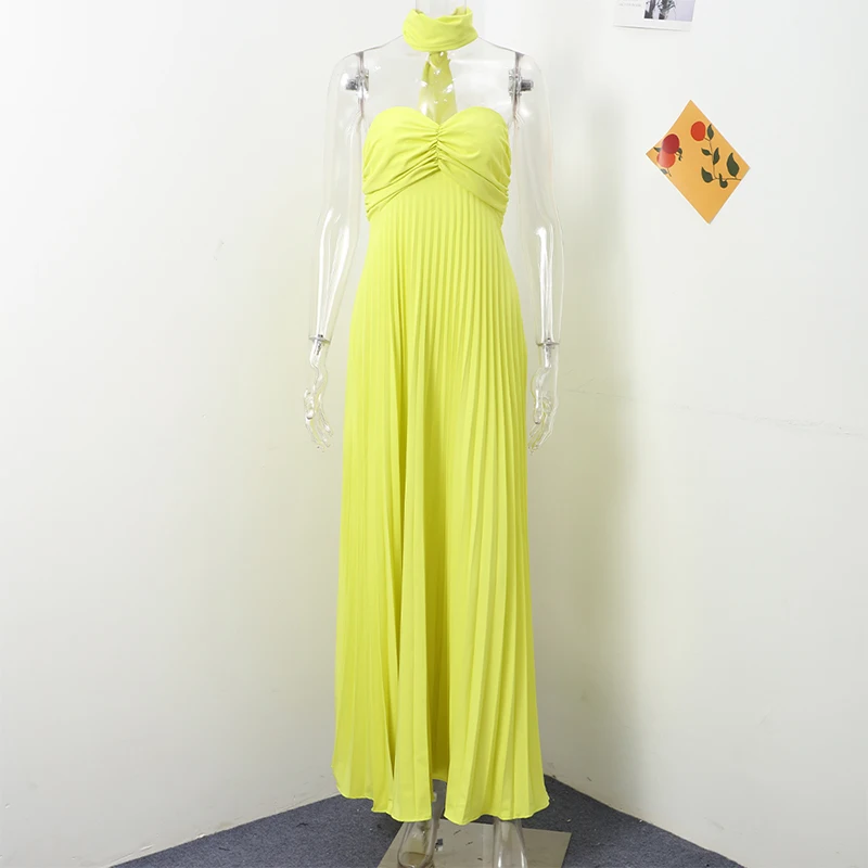 Elegante trägerlose Band-Plissee-Kleider für Damen, sexy, ärmellos, rückenfrei, langes Kleid, 2025, Frühjahr, neue Dame, Abendparty-Roben