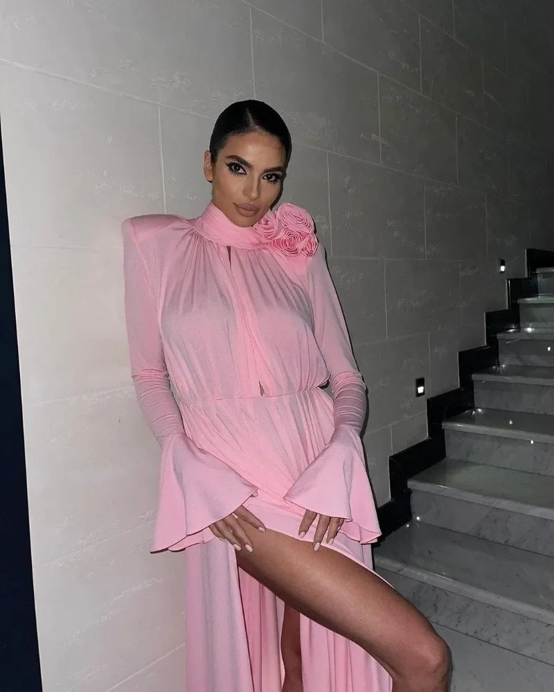 Dieses Kleid eignet sich perfekt für Partys und Abenteile und lässt sich mit seinem eleganten Blumenschlitz nahtlos von Tag zu Nacht wechseln.