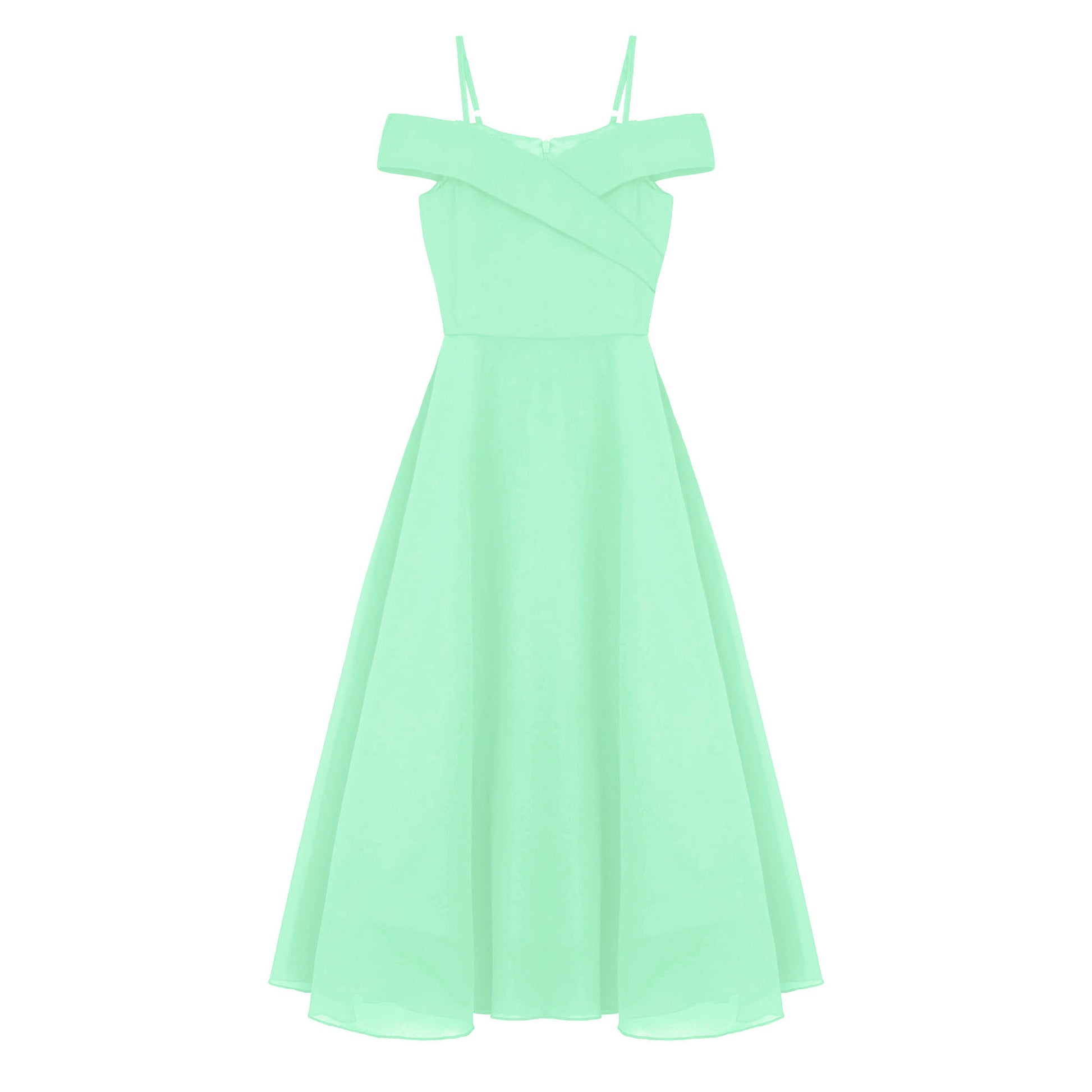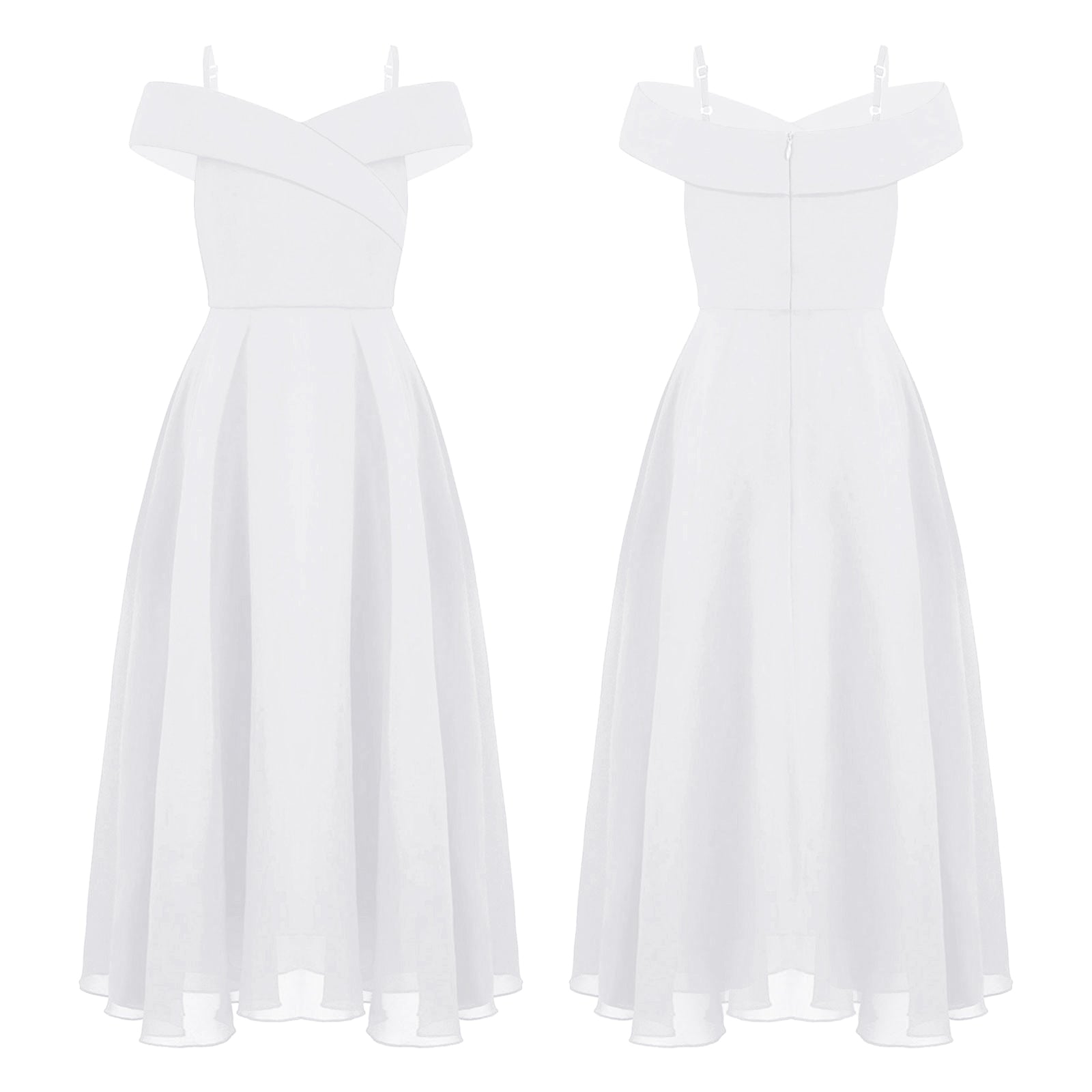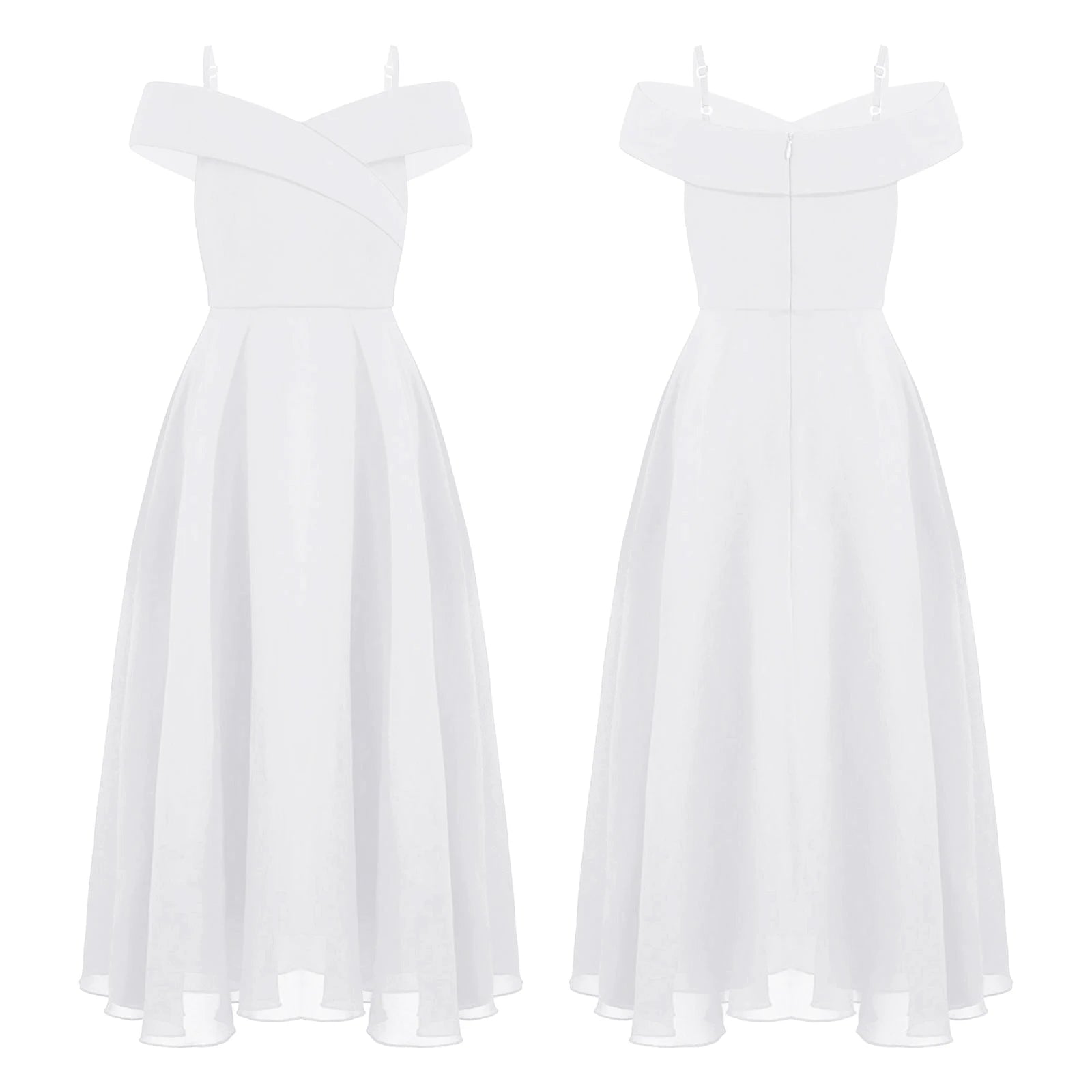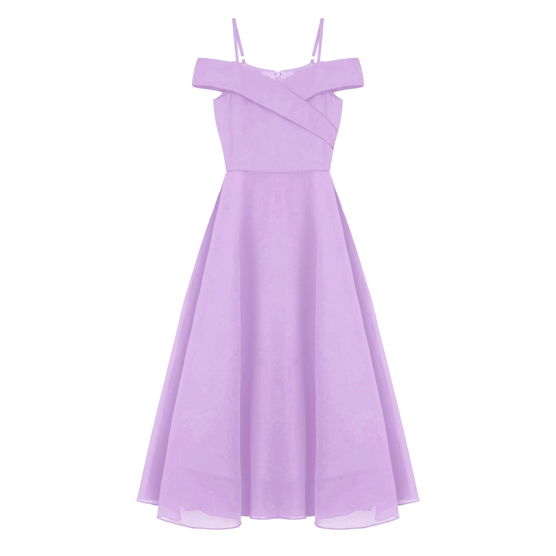 Elegantes Chiffon-Partykleid für Mädchen, schulterfrei, verstellbarer Spaghettiträger, bodenlanges Maxikleid für Hochzeit, Geburtstag, Abend