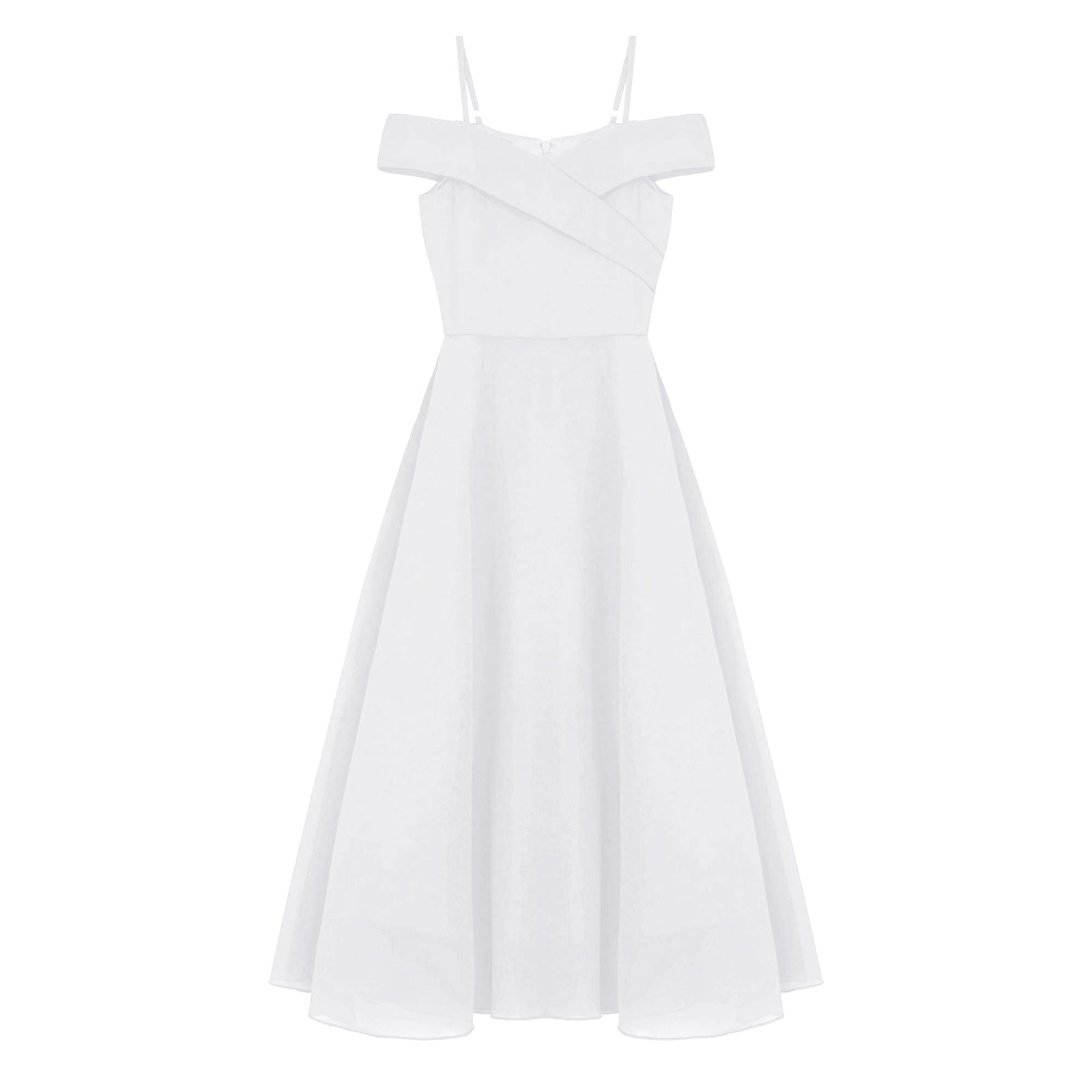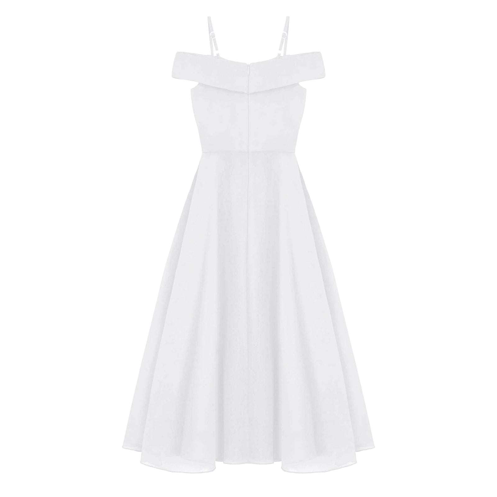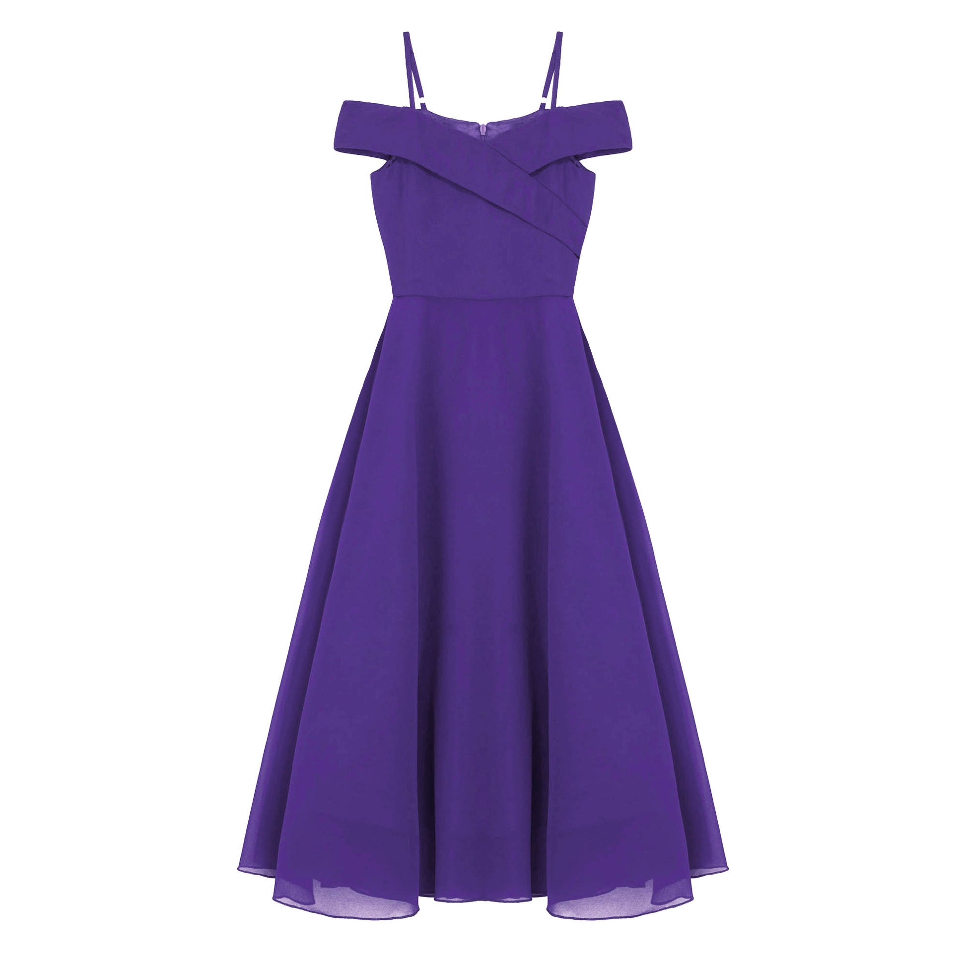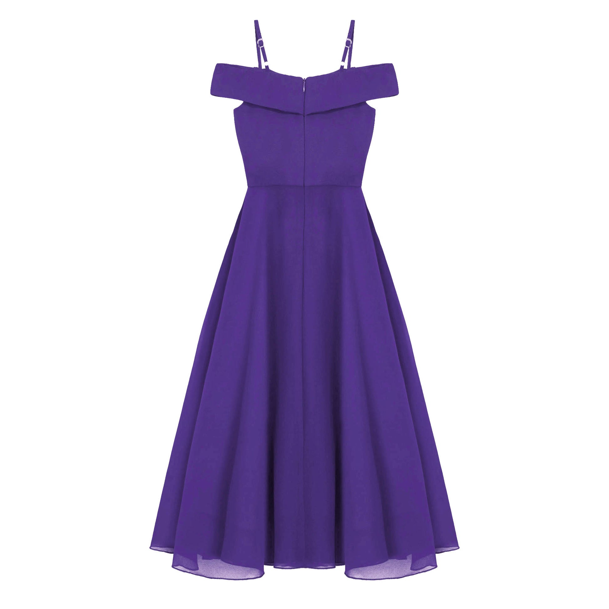 Elegantes Chiffon-Partykleid für Mädchen, schulterfrei, verstellbarer Spaghettiträger, bodenlanges Maxikleid für Hochzeit, Geburtstag, Abend