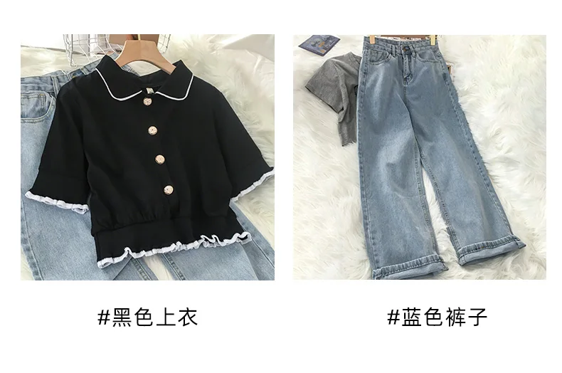Elevate your summer style with our chic black ruffle top and jeans set! Perfect for casual streetwear vibes! 🌟🖤 #KoreanFashion #SummerStyle