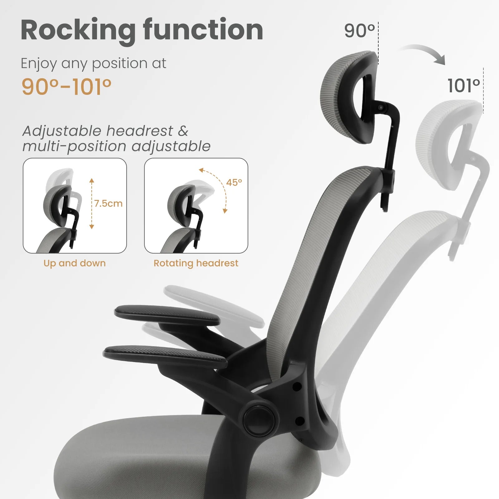 Ergonomischer Büro-Computer-PC-Schreibtischstuhl, drehbarer Netzstuhl mit Rollen, verstellbare Kopfstütze, Lordosenstütze, Heimarbeitsstuhl