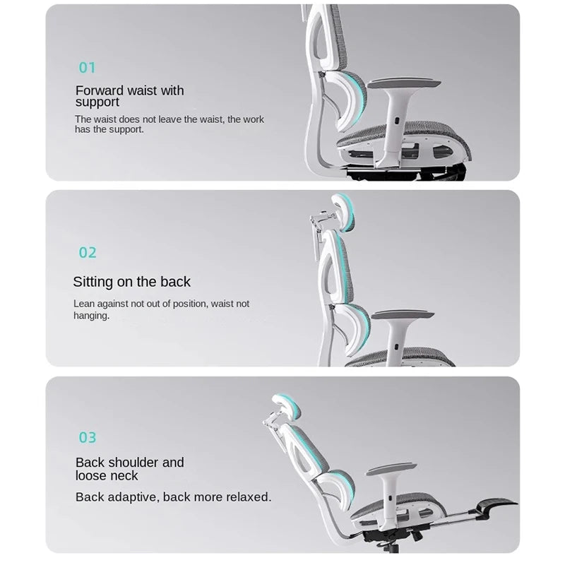 Ergonomischer Computerstuhl, Heimbüro, Lordosenstütze, Gaming-Stuhl, Liegestuhl aus Latex, atmungsaktives Mesh, 4D-verstellbare Armlehne