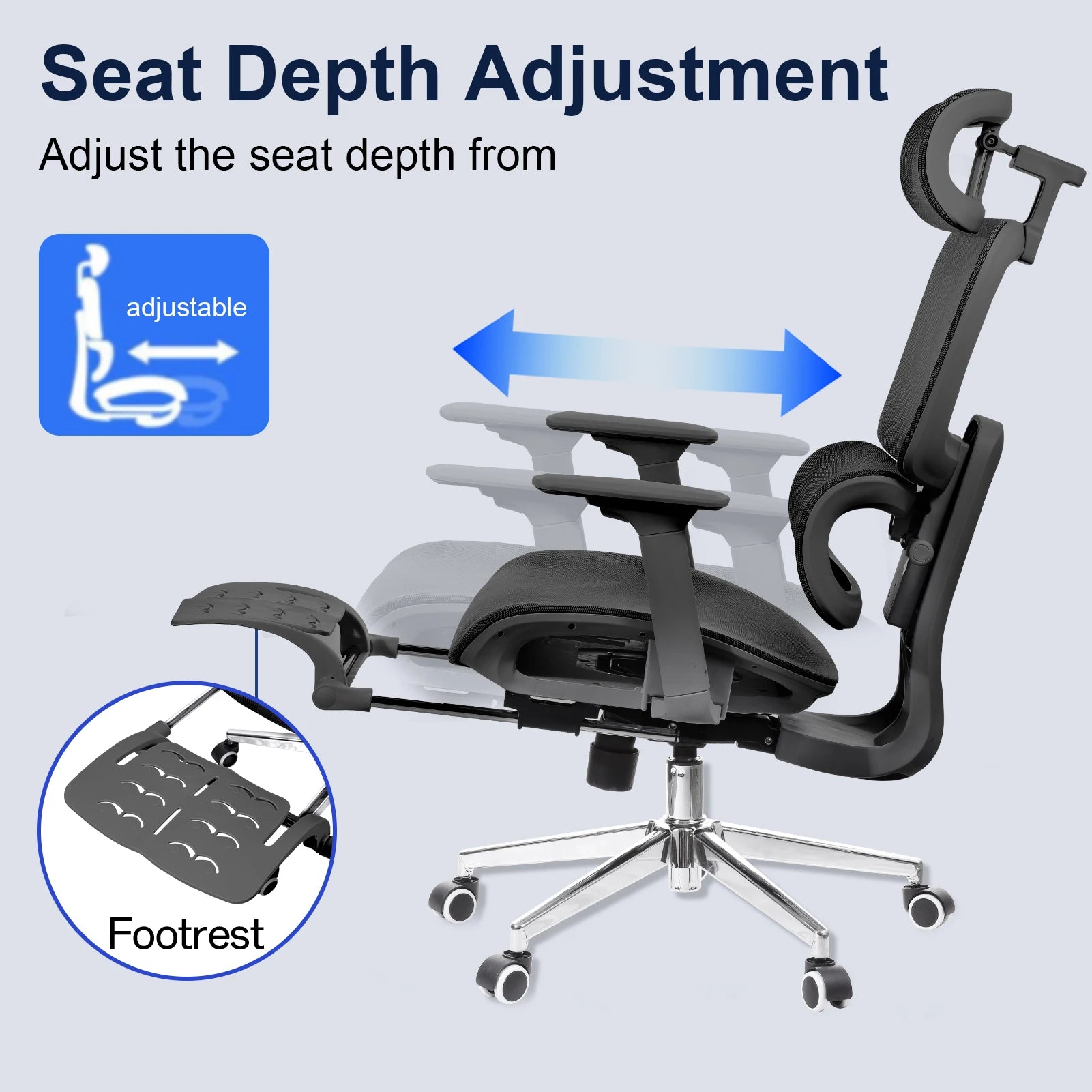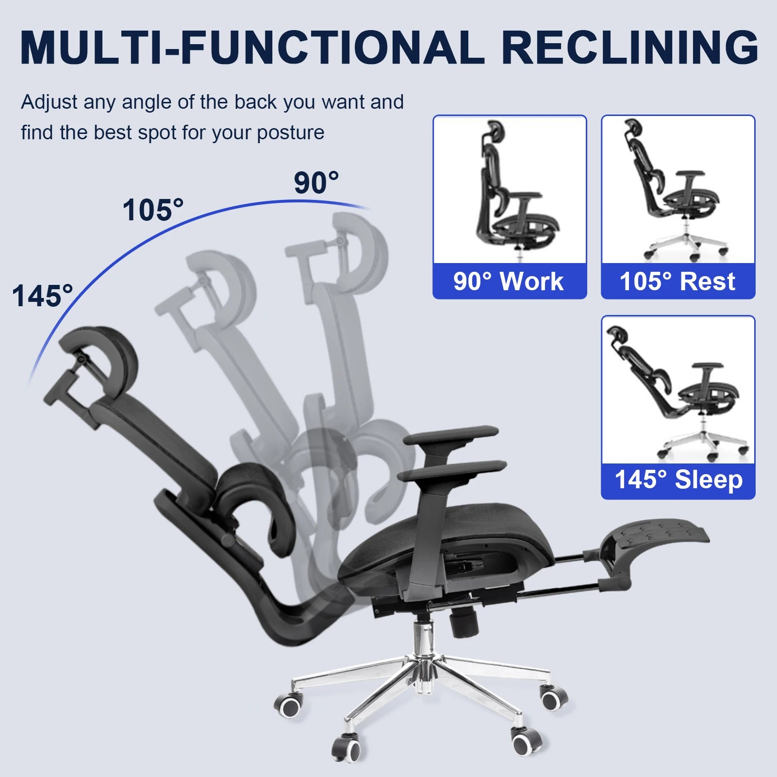 Ergonomischer Stuhl mit Fußstütze, bequemer drehbarer Schreibtischstuhl für zu Hause, Computer-Gaming-Stuhl mit 3D-verstellbarer Armlehne, Rollen für Zuhause