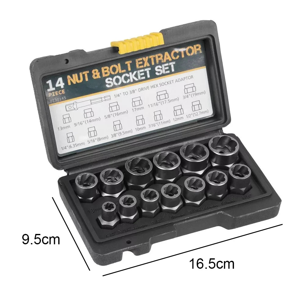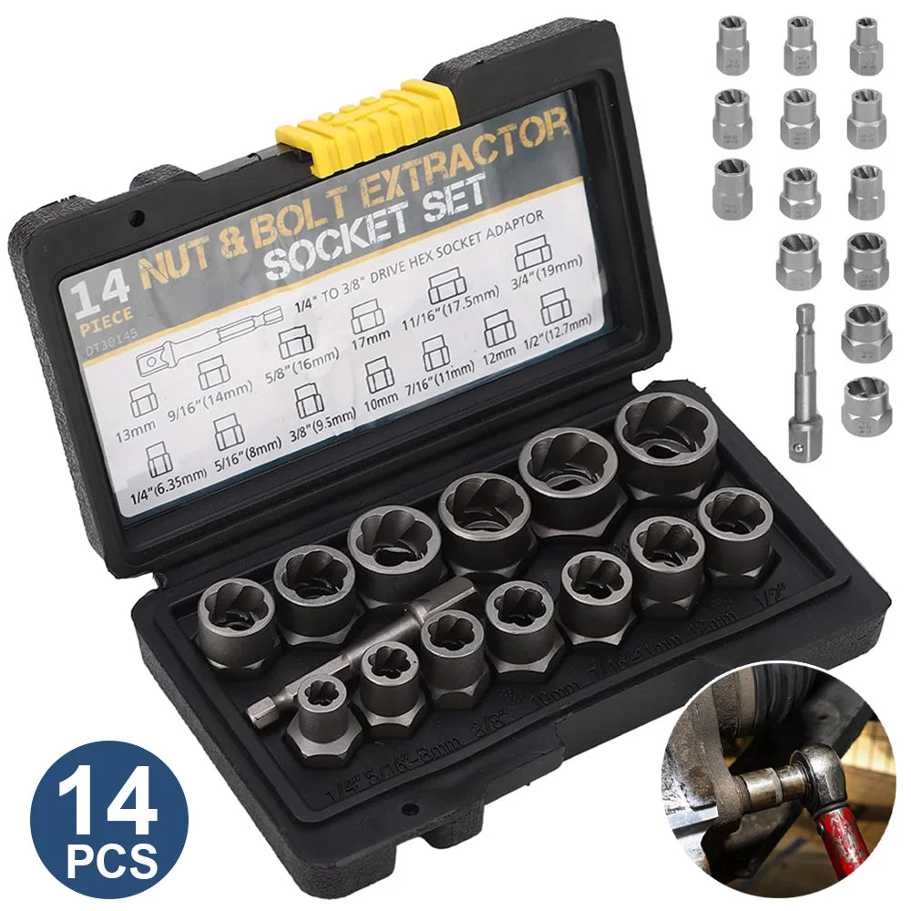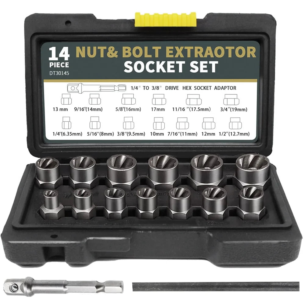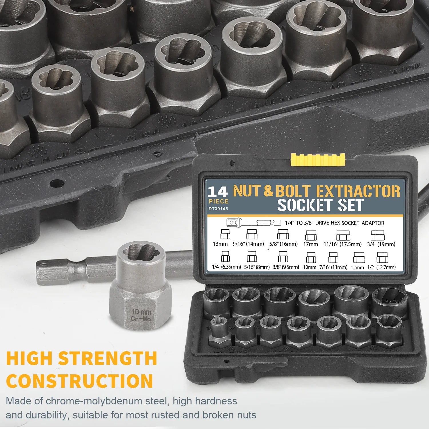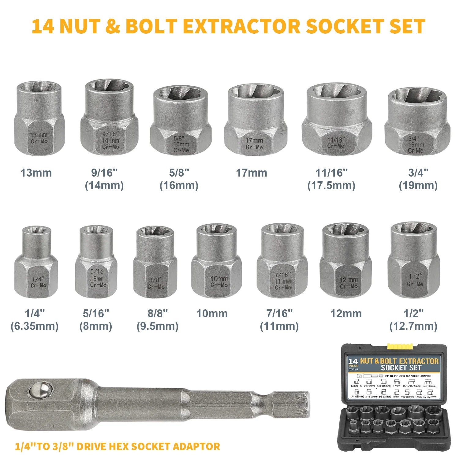 [EU-Lager] 14-teiliges Steckschlüsselset, Schlagschrauben-Mutterentferner-Set, Cr-Mo-Stahl-Schraubenausdreher-Werkzeugset für industrielle Schlagschrauben und Muttern