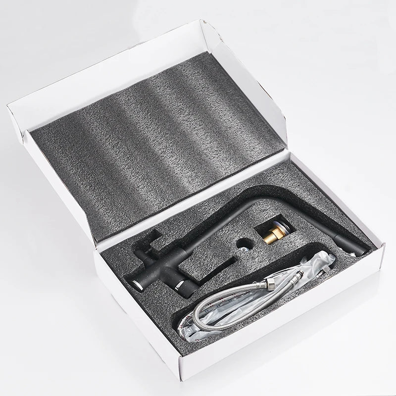 Filter Kitchen Faucet Chrome Drinking Pure Water Kitchen Tap Deck Mounted Dual Handles 3-Ways Hot and Cold Water Mixer