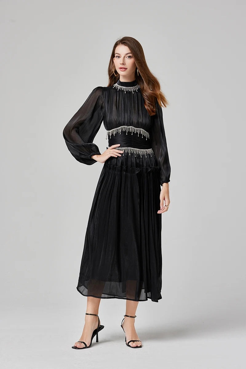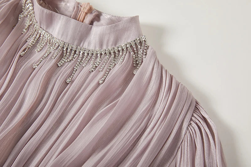 Französisch Luxus Kristall Perlen Quaste Glanz Roben Urlaub Frauen stehen Laterne Ärmel Rüschen plissiert formale Gelegenheit Ballkleid 622