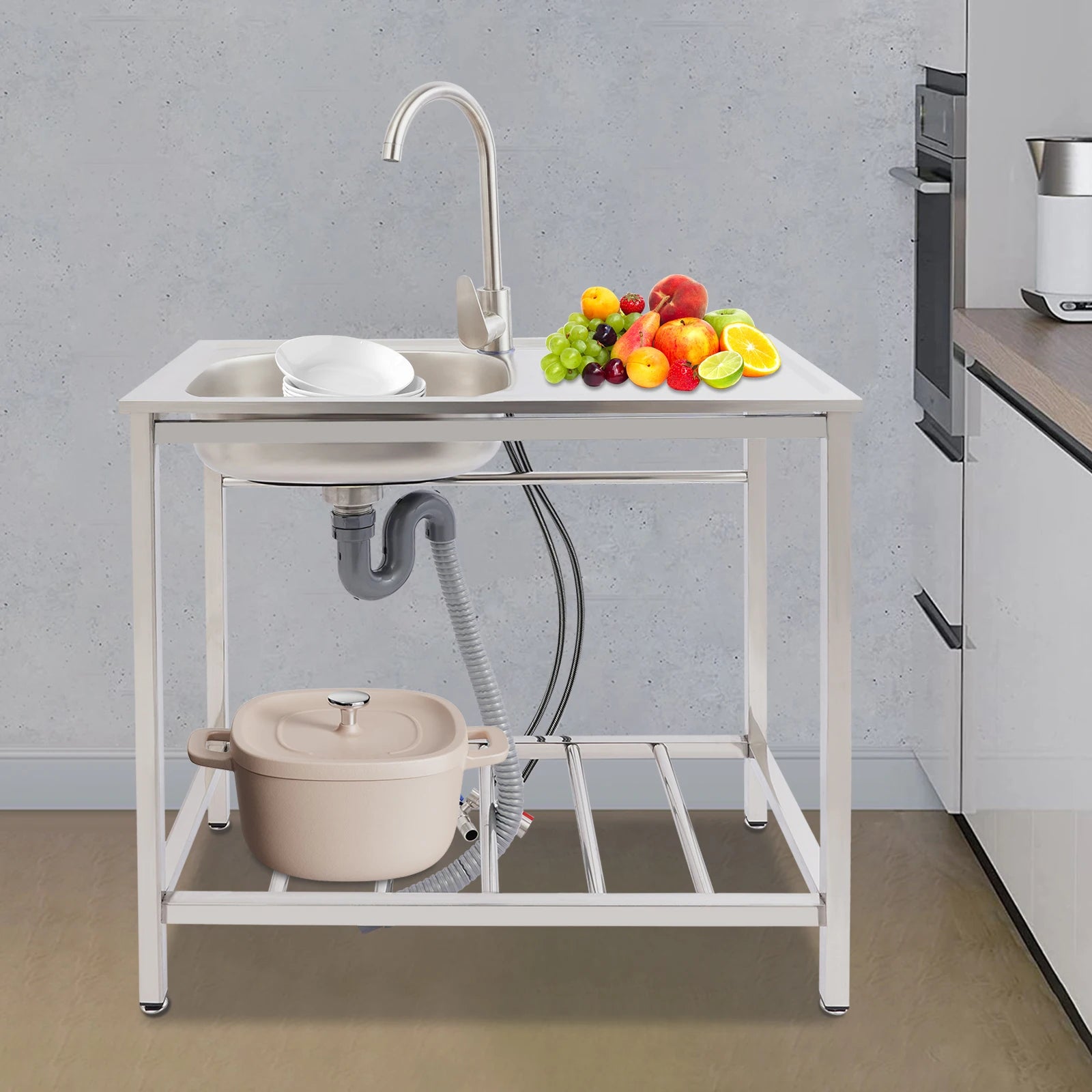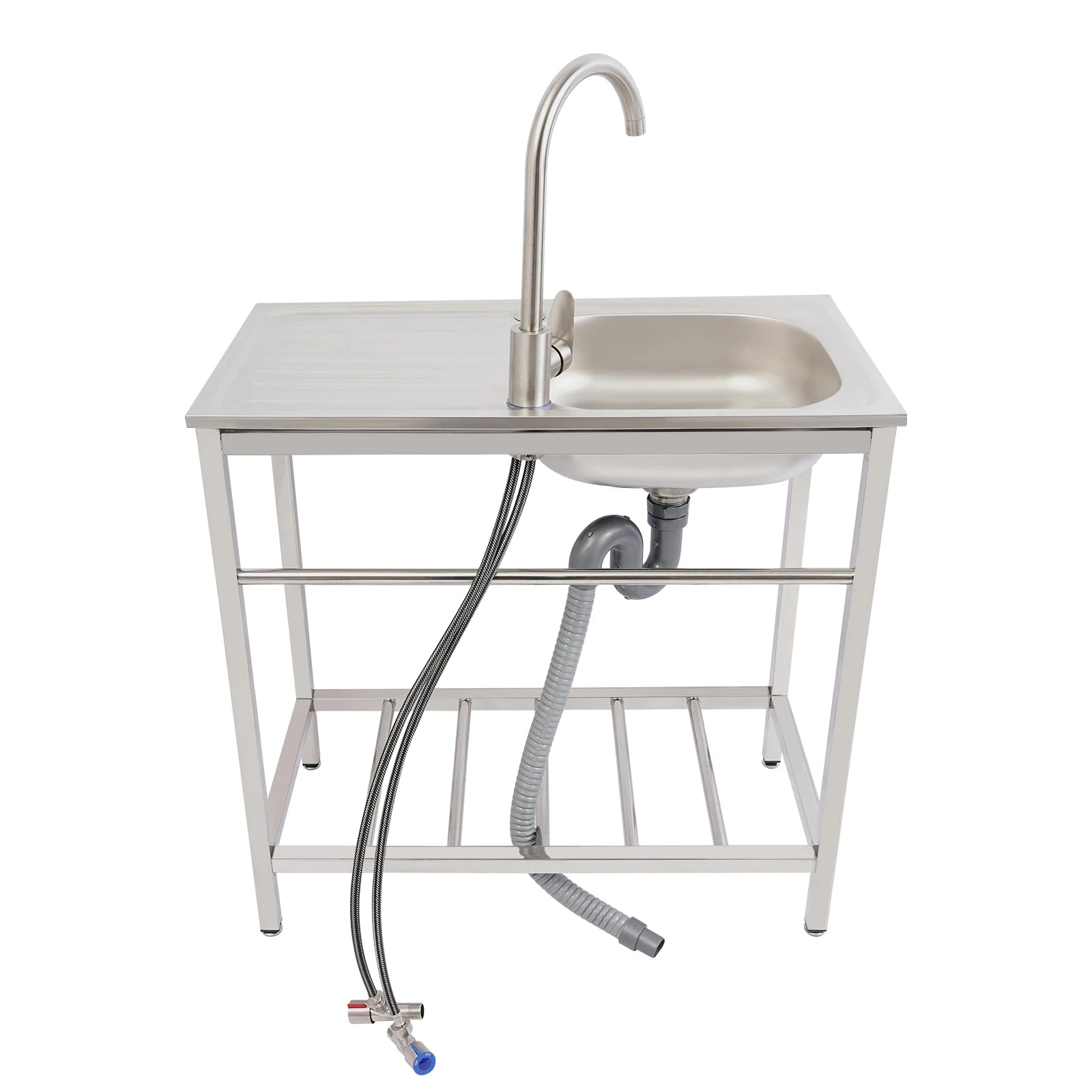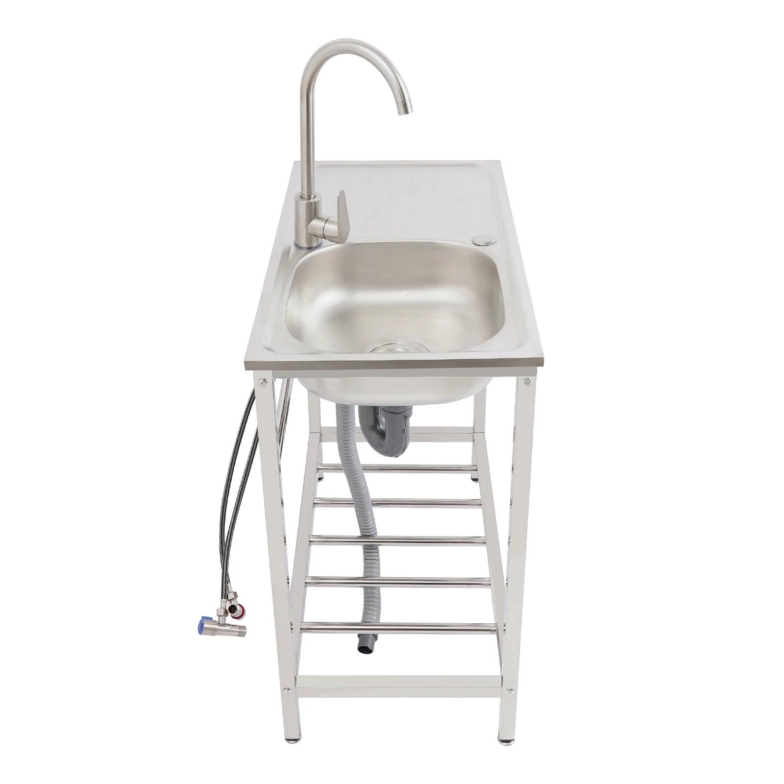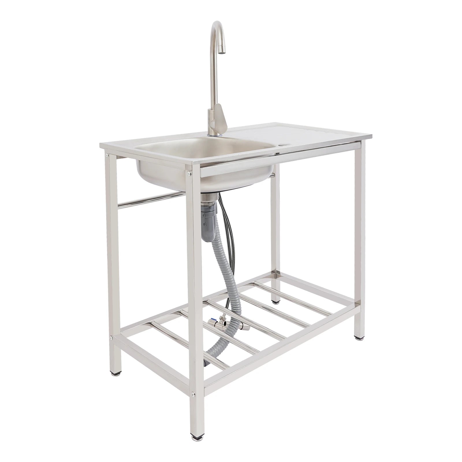 Freistehendes Waschbecken aus Edelstahl mit 360° ° Wasserhahn-Spüle mit Ablagefach, Handwaschstation für die Restaurantküche