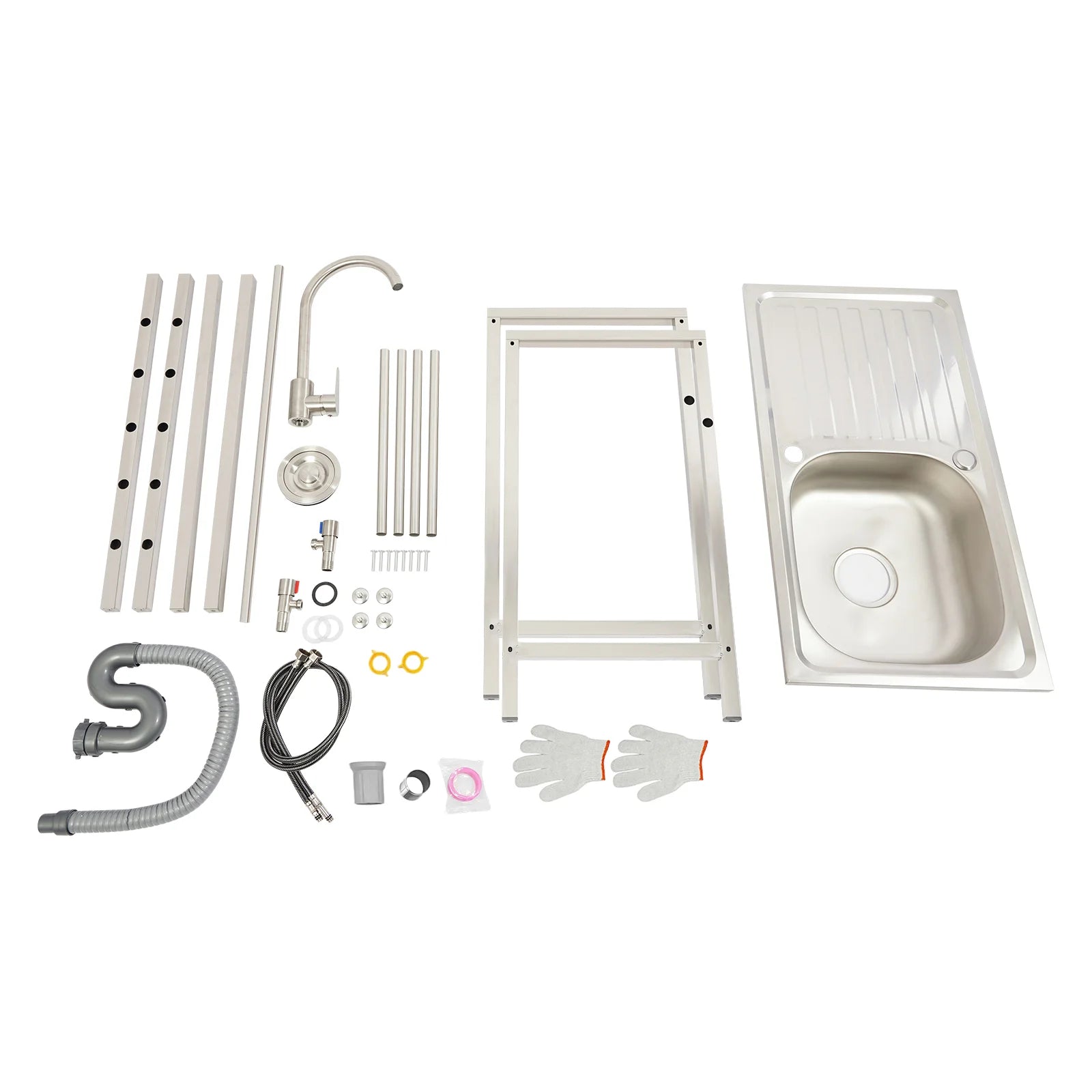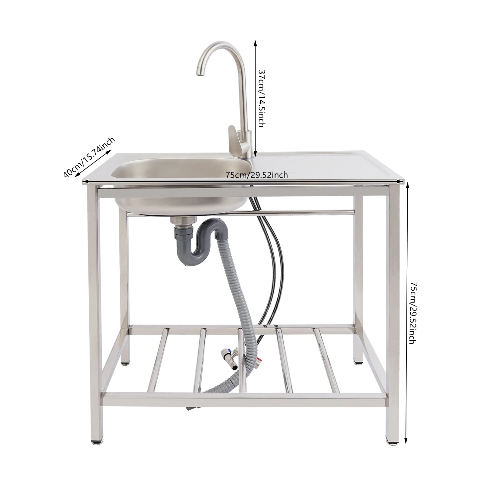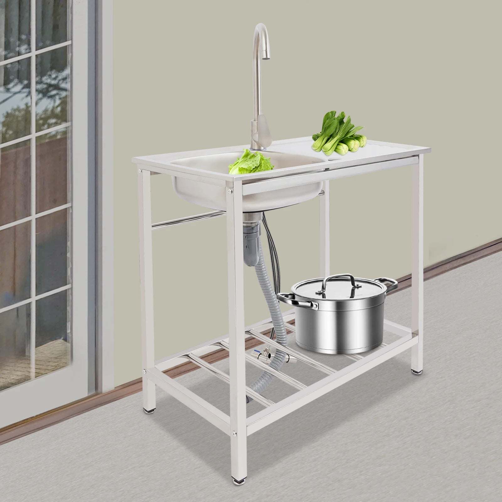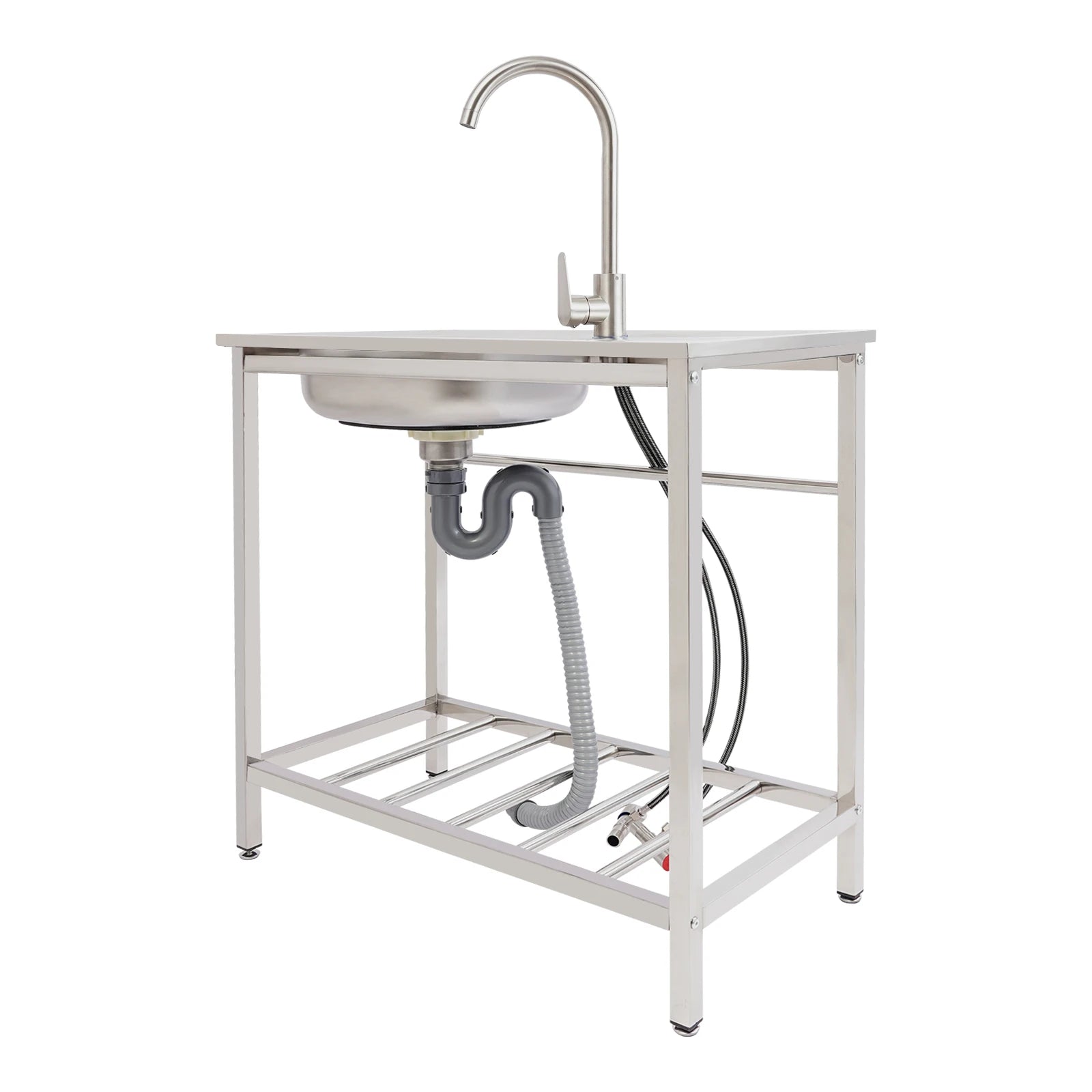 Freistehendes Waschbecken aus Edelstahl mit 360° ° Wasserhahn-Spüle mit Ablagefach, Handwaschstation für die Restaurantküche