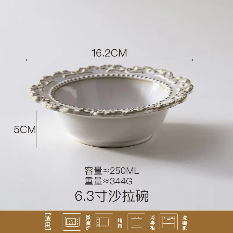 French Baroque Retro Relief Court Style Ceramic Dinner Plate European Tableware Western Food Plate Soup Plate Bowl Set