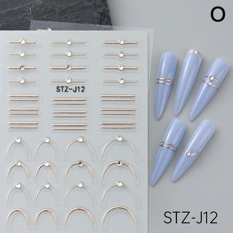 French Tips Nail Sticker 5D Embossed Crystal French Nail Decals Gold Silver Black Line Design Adhesive Slider Nails Art