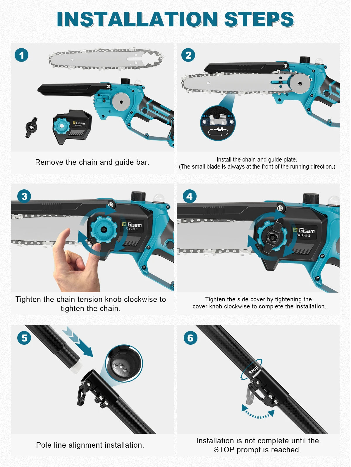 GΣ Bürstenlose Teleskopstange, elektrische Kettensäge, kabellose Hochverschraubungssäge, 2-in-1-Gartenschere für Makita 18 V Akku-Stift
