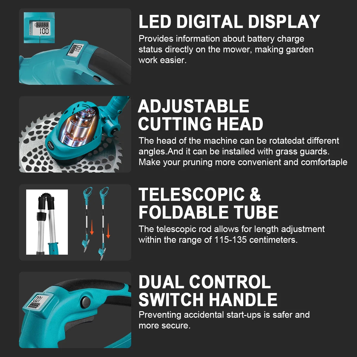 G perfil 10 Zoll bürstenloser elektrischer Rasenmäher, faltbarer Schneider, kabelloses Garten-Gras-Schneid-Trimmer-Werkzeug für Makita 18 V Akku-Pin