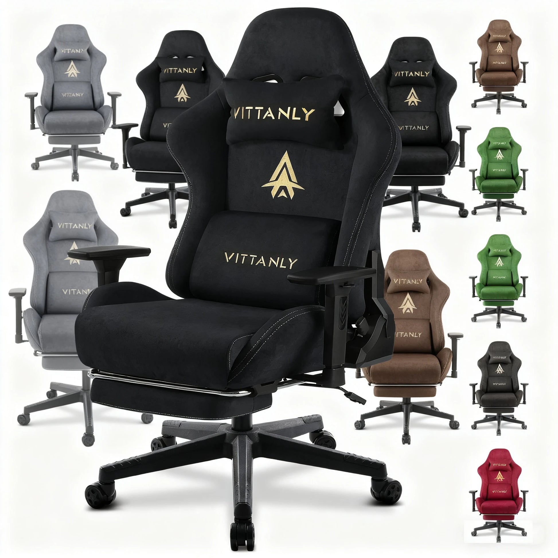 Gaming-Stuhl, Bürostuhl, atmungsaktiver Wildlederstoff, Spielstuhl mit Fußstütze, Fußstütze, Stuhl, Kopfstütze, groß, hoch, ergonomischer Spielstuhl