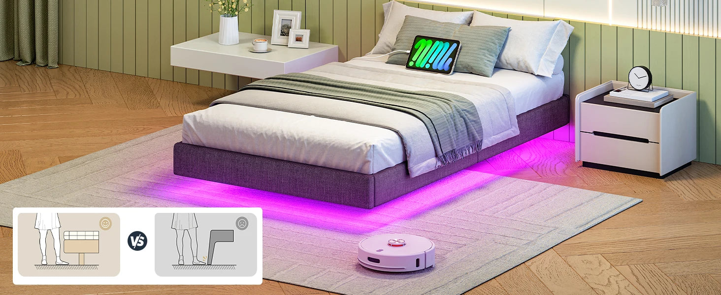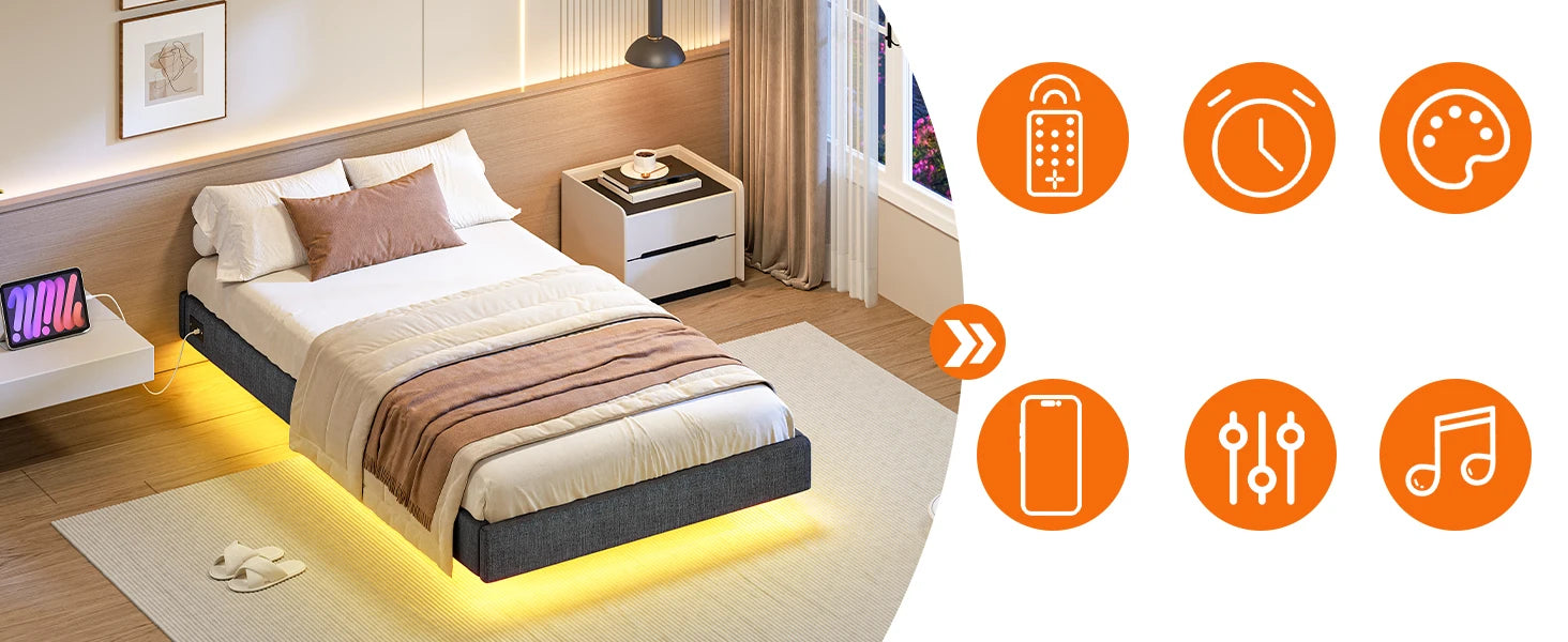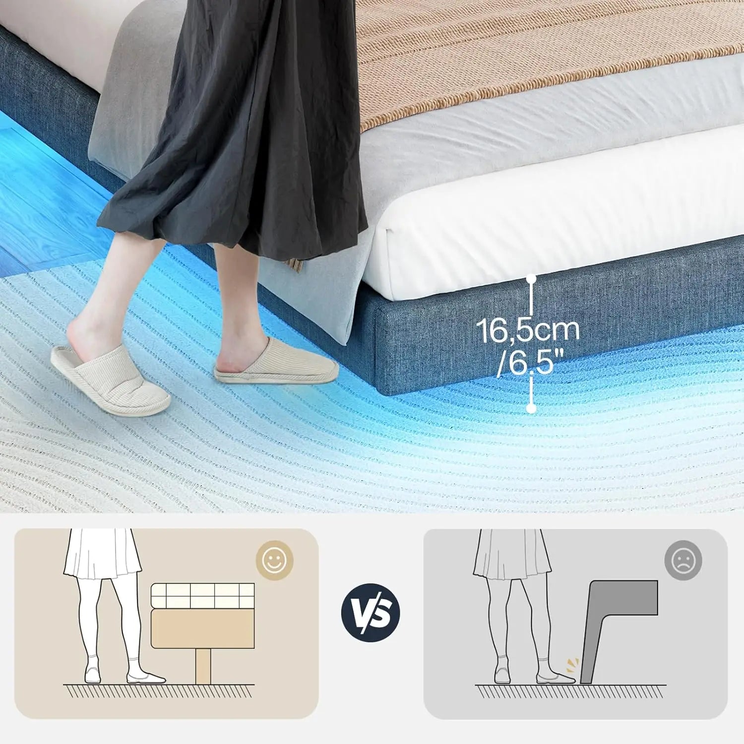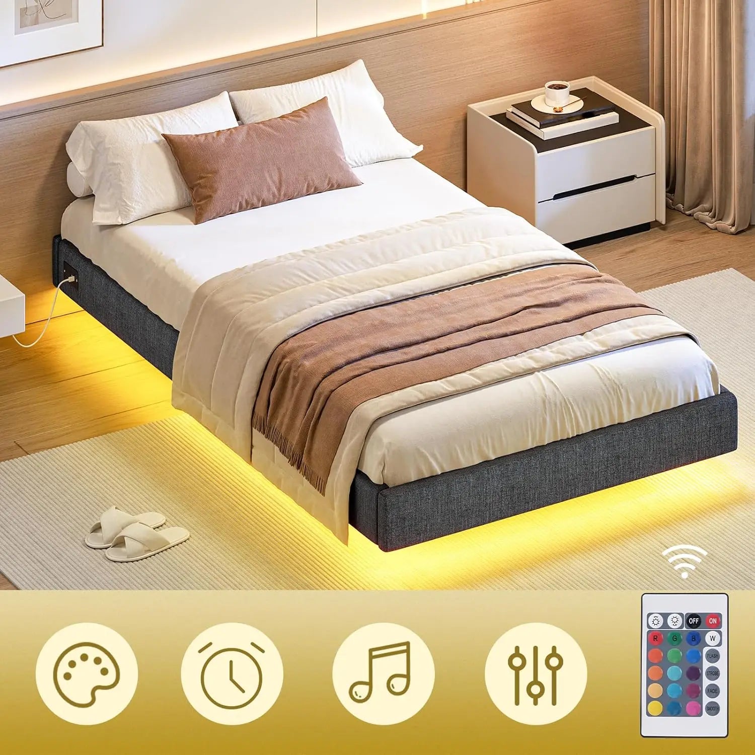Gästebett 90 x 200 cm mit Ladestation und LED-Beleuchtung, Bettrahmen, einfache Montage zum Schlafen